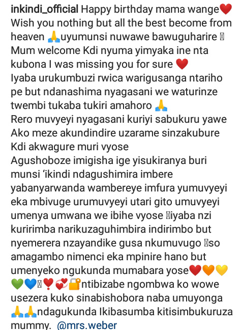 Abinyujije ku rukuta rwe rwa Instagram, Aisha yashyizeho amafoto ari kumwe na Mama we maze arenzaho amagambo atakagiza Mama we wari waguze isabukuru y’amavuko.
