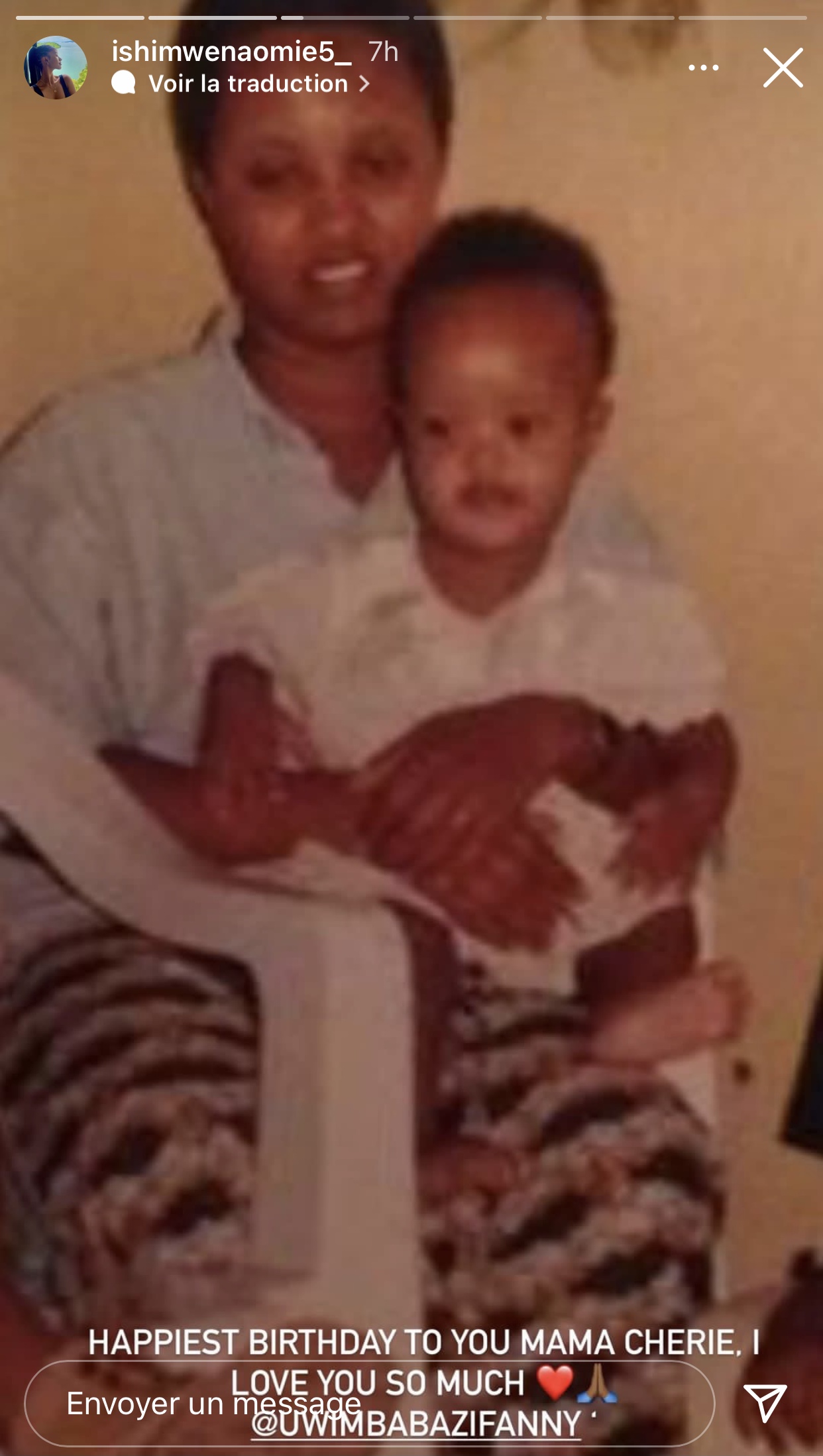 Ni nyuma yuko Miss Naomie yari amaze gushyira hanze ifoto ye ari kumwe na Mama we maze akayiherekesha amagambo agira ati « Happy birthday to you Mama cherie, I love you so much ❤️🙏🏽».