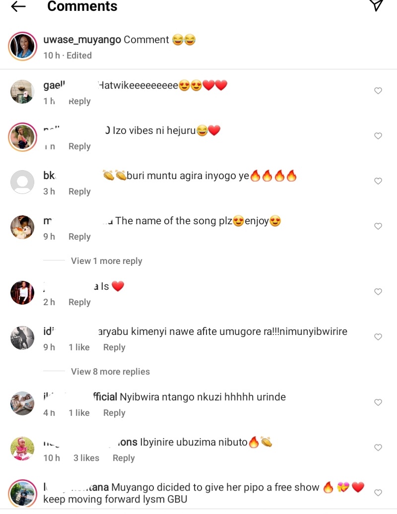 Miss Uwase Muyango ukunze gufata umwanya akanya ku mbuga nkoranyambaga agasangiza abamukurikira bumwe mu buzima bwe abayemo ,kuri iyi nshuro yagaragaye abyinira abafana be maze nabo bamwereka ko yabanejeje.