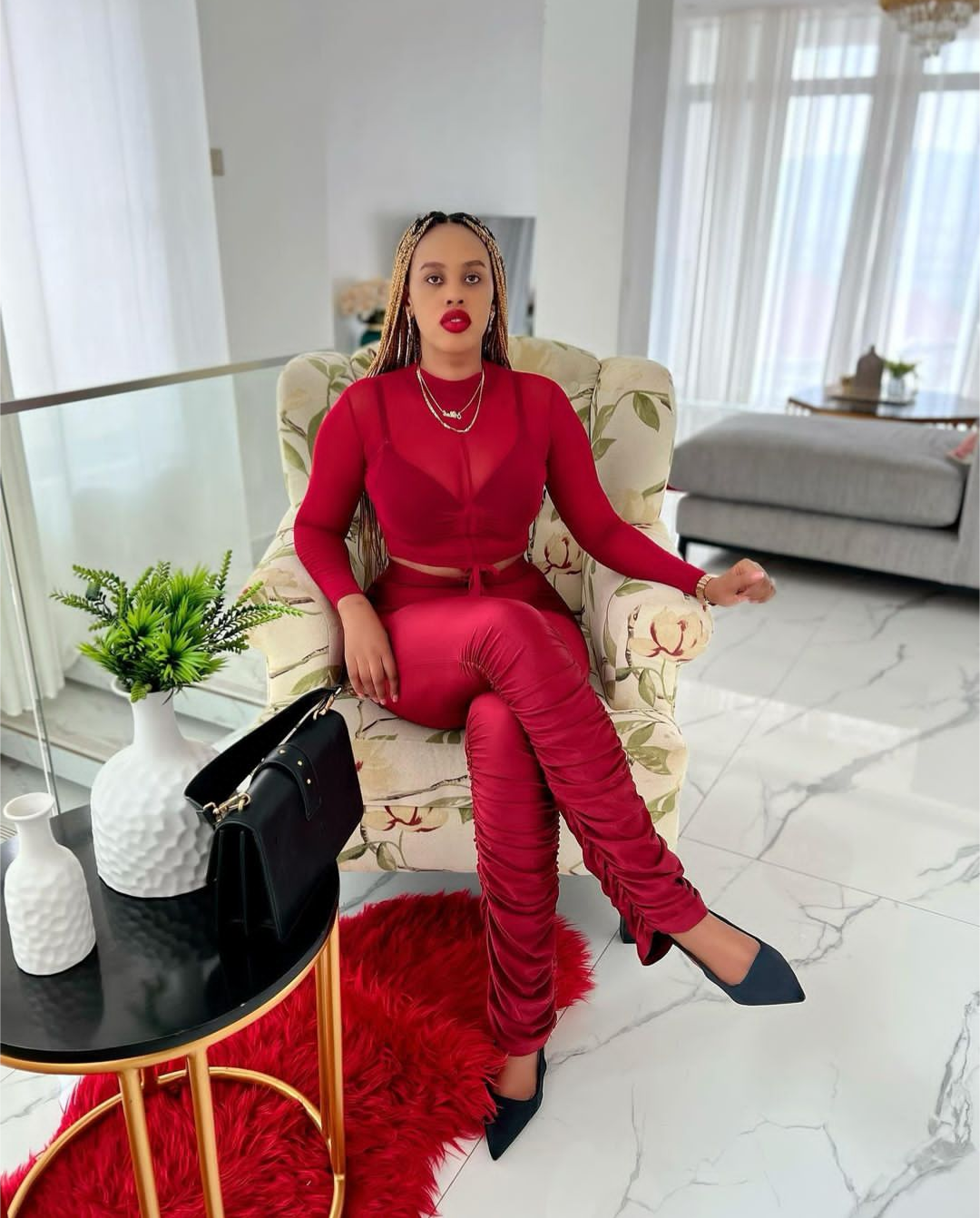 Mu mwenda w’umutuku amafoto agaragaza ubwiza n’uburanga bwa Alliah Cool wasajije abantu kumbuga nkoranyambaga