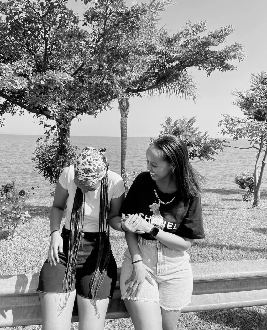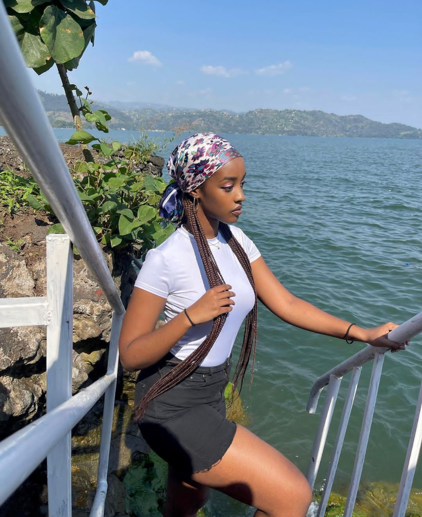 Mu mafoto yashyizwe ku mbuga nkoranyambaga za Miss Kayumba Darina yagaragaye yibereye ku mazi aho yari yambaye imyenda idateza abantu ubushyuhe ndetse ari kumwe n’inshuti ye yitwa Umuhoza Pascaline.