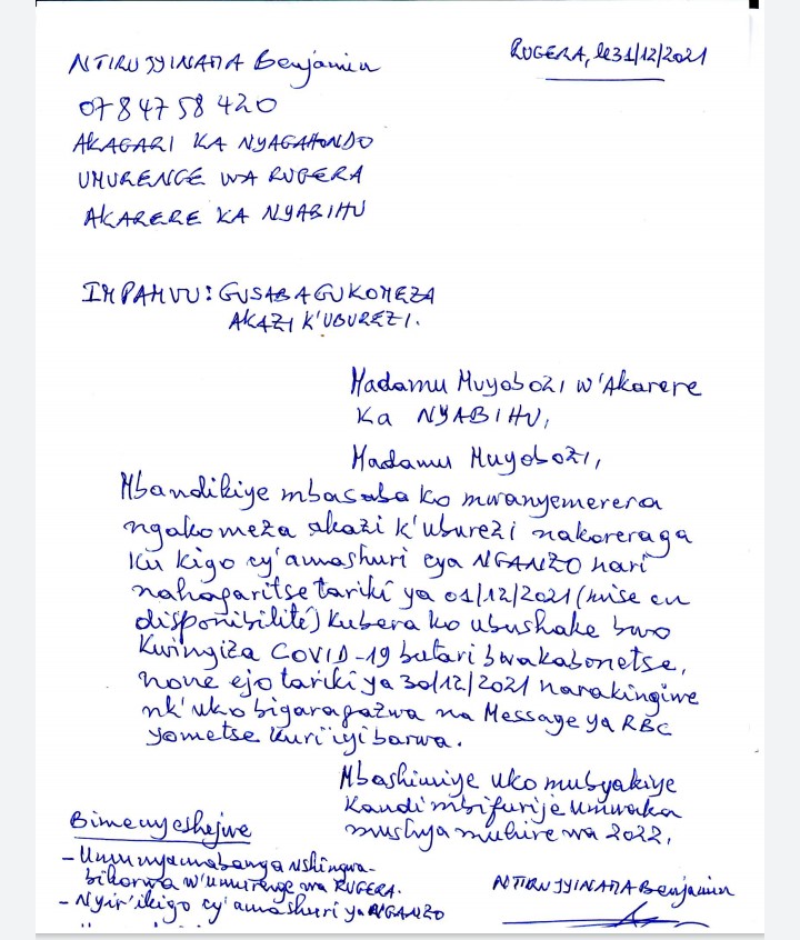 Umunyarwanda yagize ati “Ubugabo butisubiye bubyara ububwa”. Umugabo witwa Benjamin Ntirujyinama yafashe umwanzuro wa kigabo wo kwandika ibaruwa isaba ko yagaruka ku kazi nyuma yuko avuye ku izima akikingiza Korona.