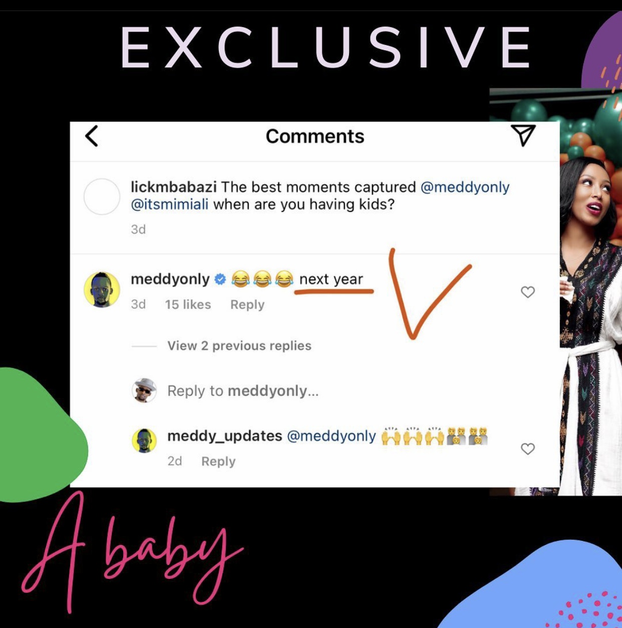 Ibi Licky yabibabajije abinyujije ku rukuta rwe rwa instagram nuko Meddy nta kuzuyaza ahita avuga ko we umugore we bazibaruka imfura yabo mu mwaka utaha.