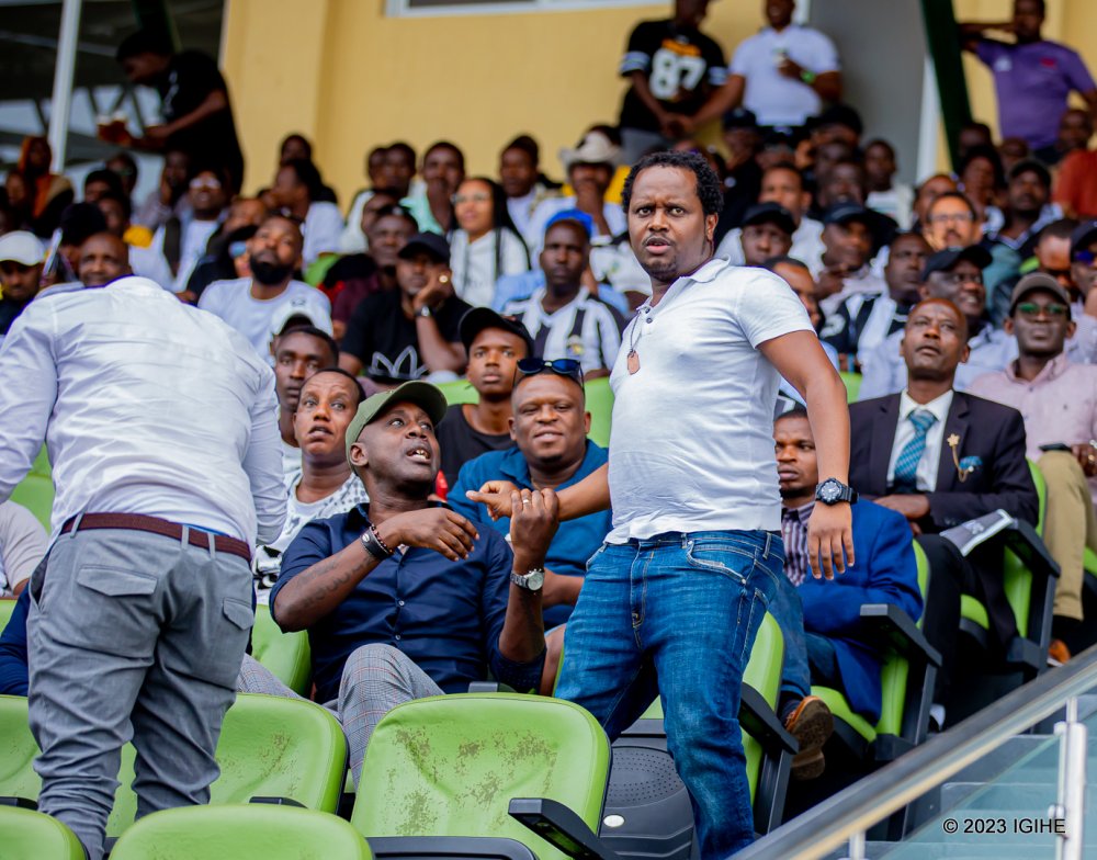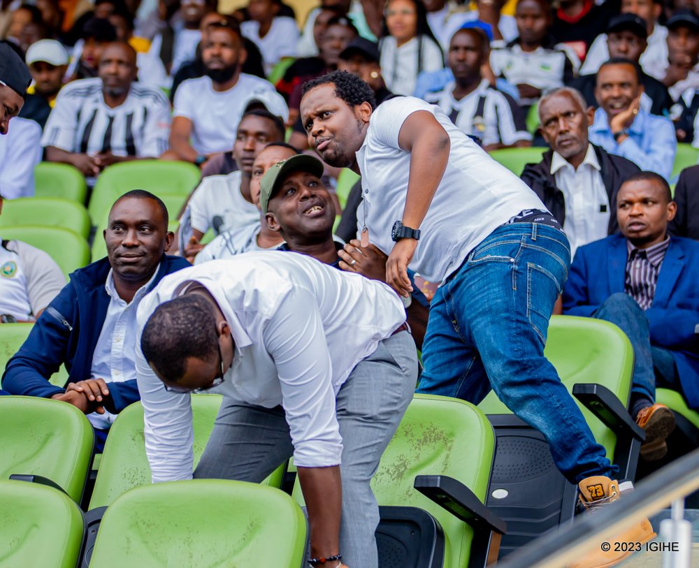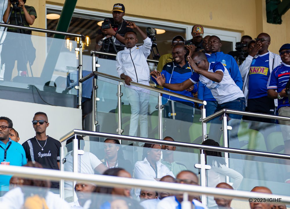 Eto’o yavugirijwe induru n’abafana ba Rayon Sports bari bicaye ahegereye imyanya y’icyubahiro.