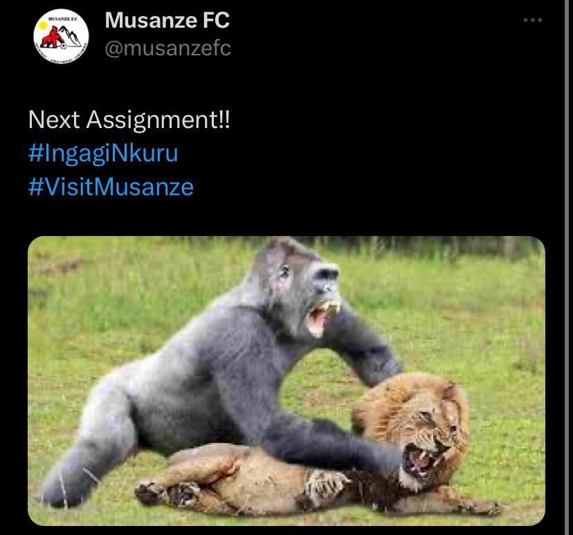 Kuri uyu wa kabiri ikipe ya Musanze FC ibinyujije kumbuga nkoranyambaga zayo yashyizeho Ingagi irimo kuniga intare, bisa nkaho irimo gutera ubwoba APR FC bizahura.