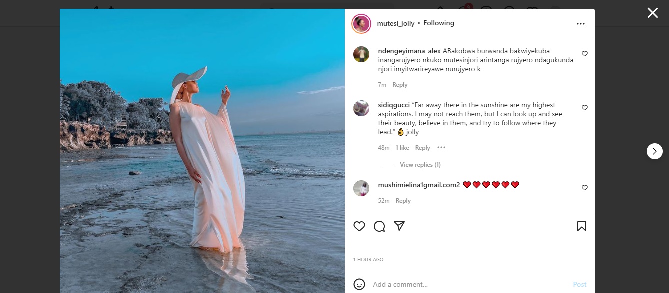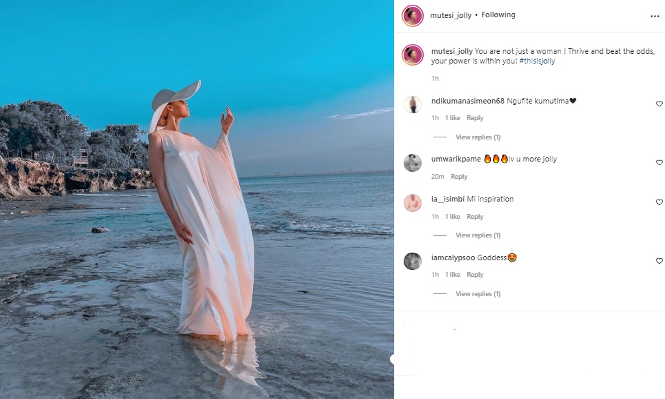 Umwe mu bamukurikira yagize ati, ”Abakobwa b’u Rwanda bakwiye kuba intangarugero nkuko Mutesi Jolly  ari intanga rugero. Ndagukunda Jolly !”