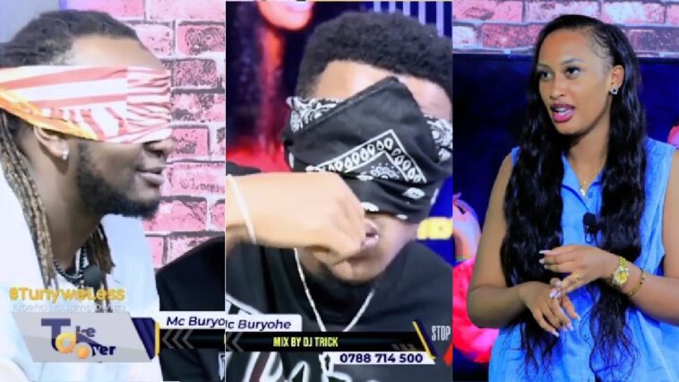 Miss Uwase Muyango yahaye ikizamini abanyamakuru bagenzi be bakorana ku Isibo TV ubwo bari muri sitidiyo cyo gutanguranwa kurya igi bakoresheje ifoke kandi yabafunze amaso.