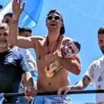 Ubushotoranyi; Umuzamu wa Arijantine yagiye kwishimira intsinzi ateruye agapupe gafite umutwe umeze nk’uwa Mbappé