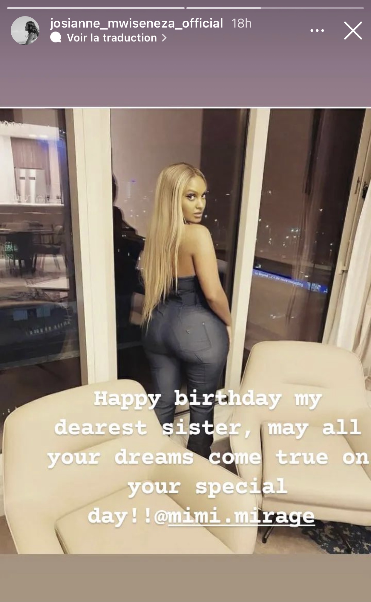 Abinyujije kuri story ya instagram ye, Mwiseneza Josiane yanditse amagambo agira ati « Happy birthday my dearest sister, may all your dreams come true on your special day!! @mimi.mirage ».