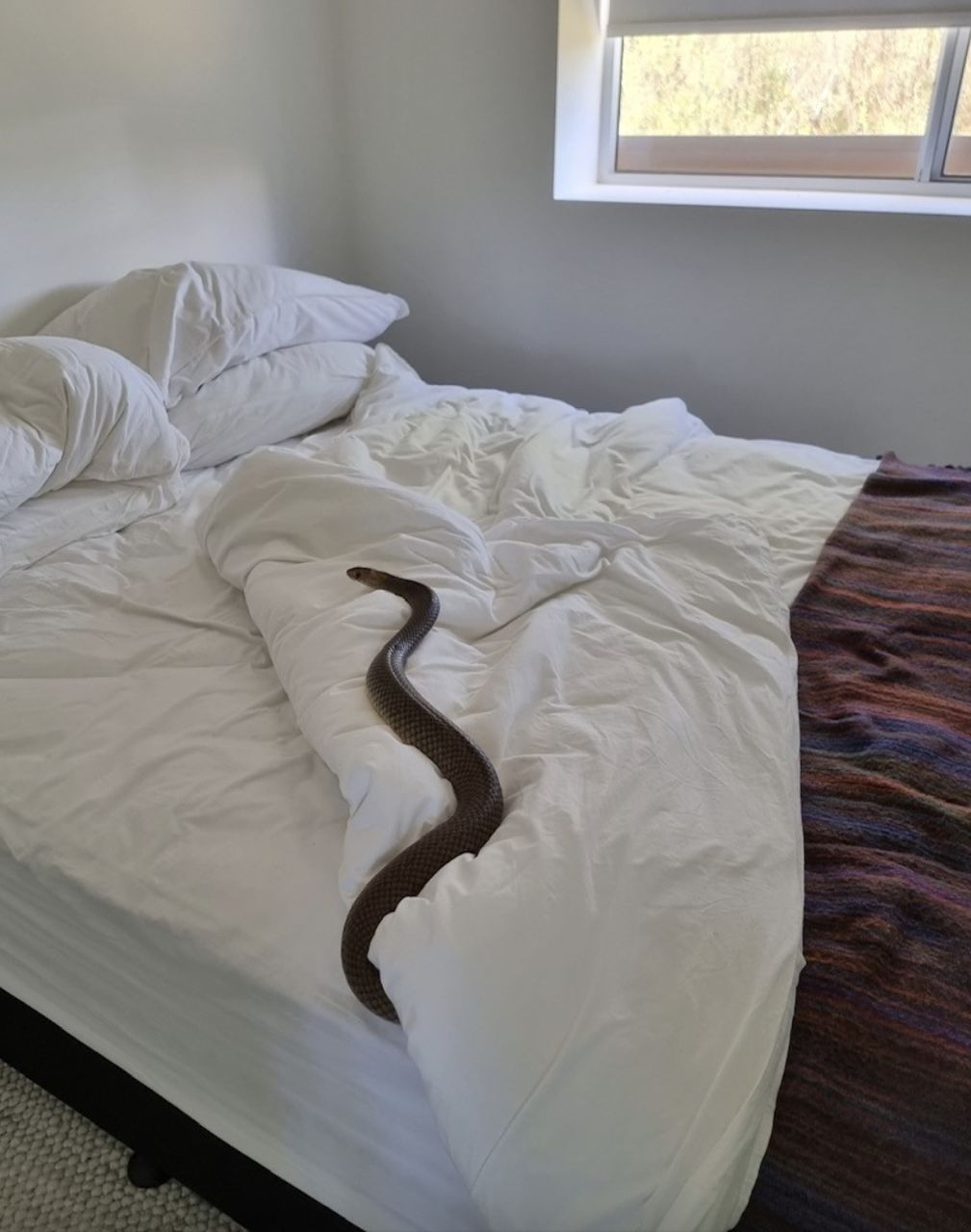 Umuturage wo muri Kalbar  mu  Burengerazuba bwa Gold Coast muri Queensland  yatunguwe no gusanga inzoka mu buriri bwe yiyoroshe ,ahita asaba abantu kujya babanza kwitondera aho baryama kuko ngo iyo atabanza kureba yari kugirirwa nabi niyo nzoka .
