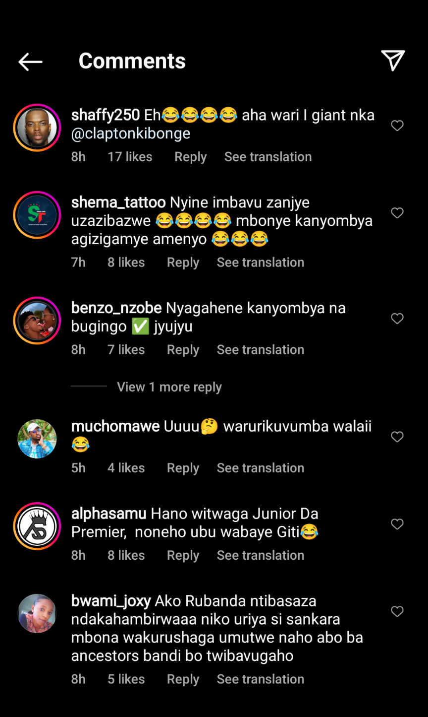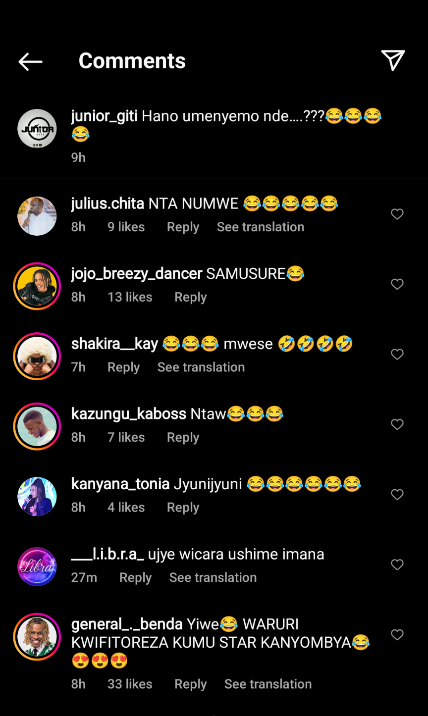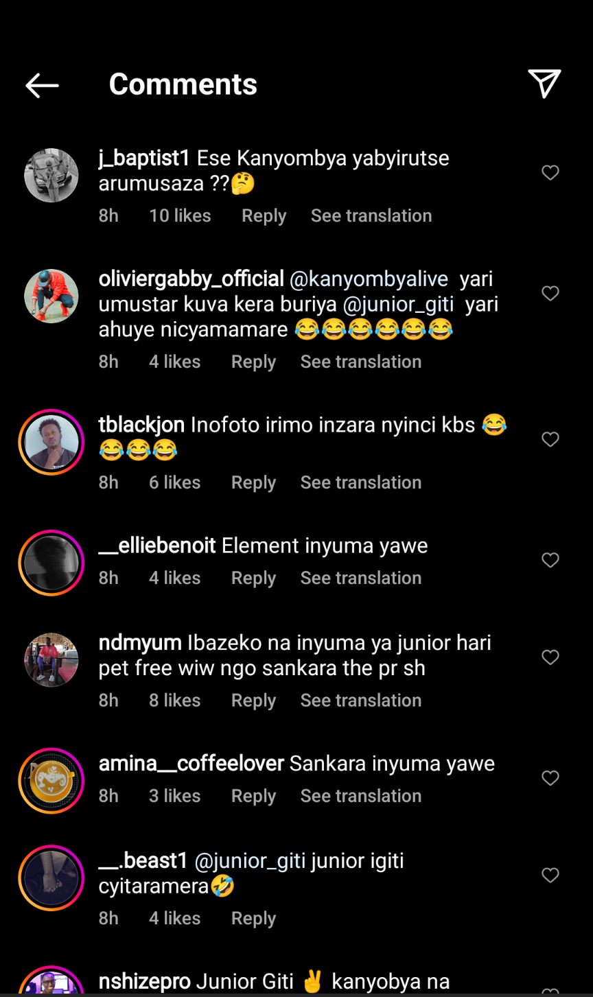 Junior Giti abinyujije ku rubuga rwa Instagram yashyizeho ifoto ye ya kera ari kumwe n’ibyamamare bikomeye cyane hano mu Rwanda harimo Kanyombya, Samusure ndetse nawe ubwe bari mbere y’amacupa y’ibisindisha maze agira ati:”Hano umenyemo nde?” akimara kwandika aya magambo abantu nabo ntibaripfanye.