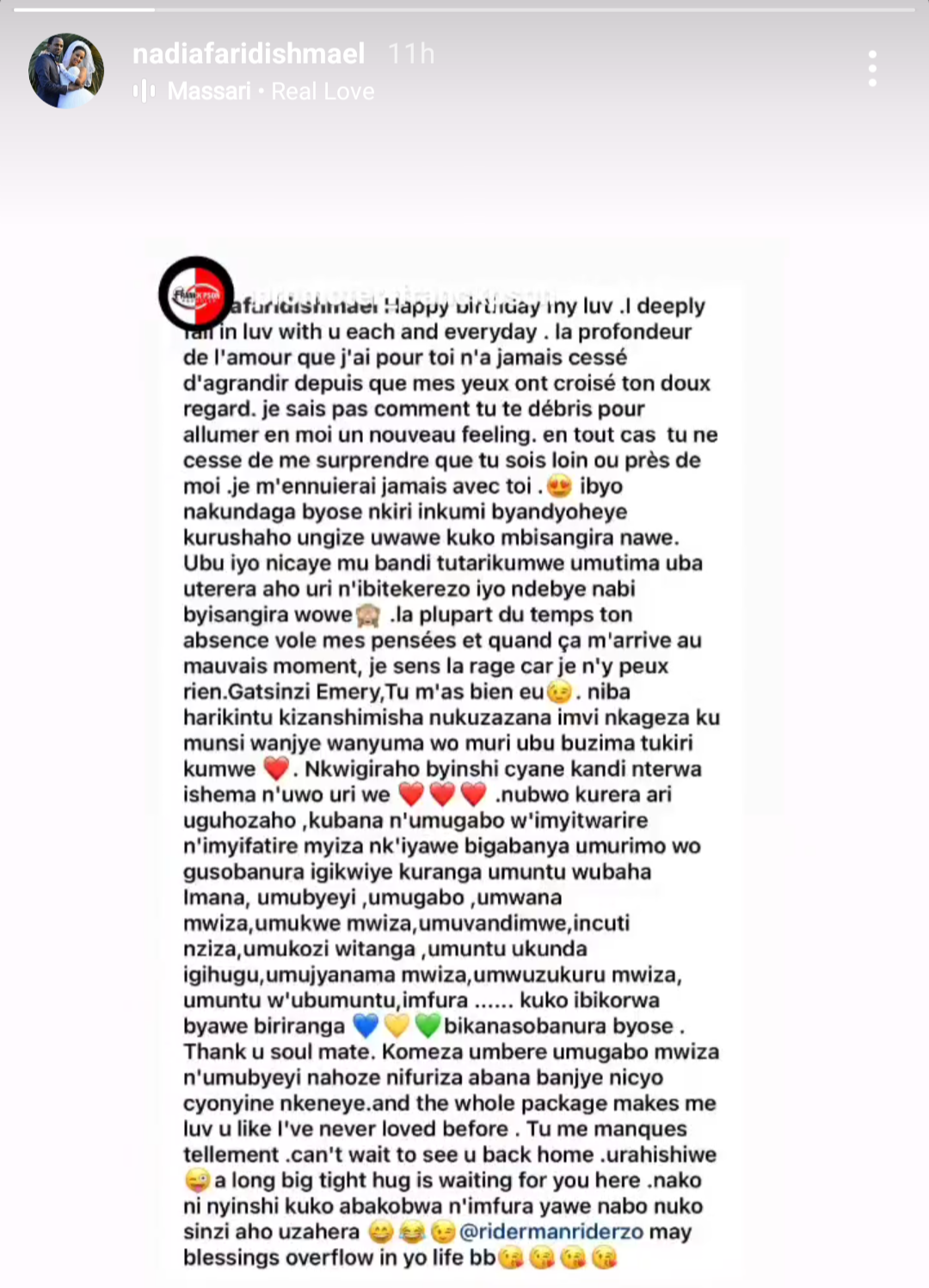 Nadia Farid Ishmael umugore wa Riderman yifurije isabukuru nziza umugabo we yifashishije amagambo akomeye yiganjemo amuvuga imyato kuri iyi sabukuru.