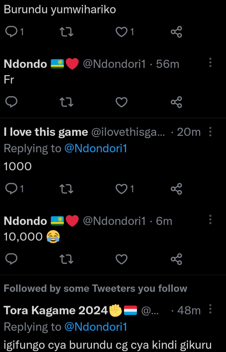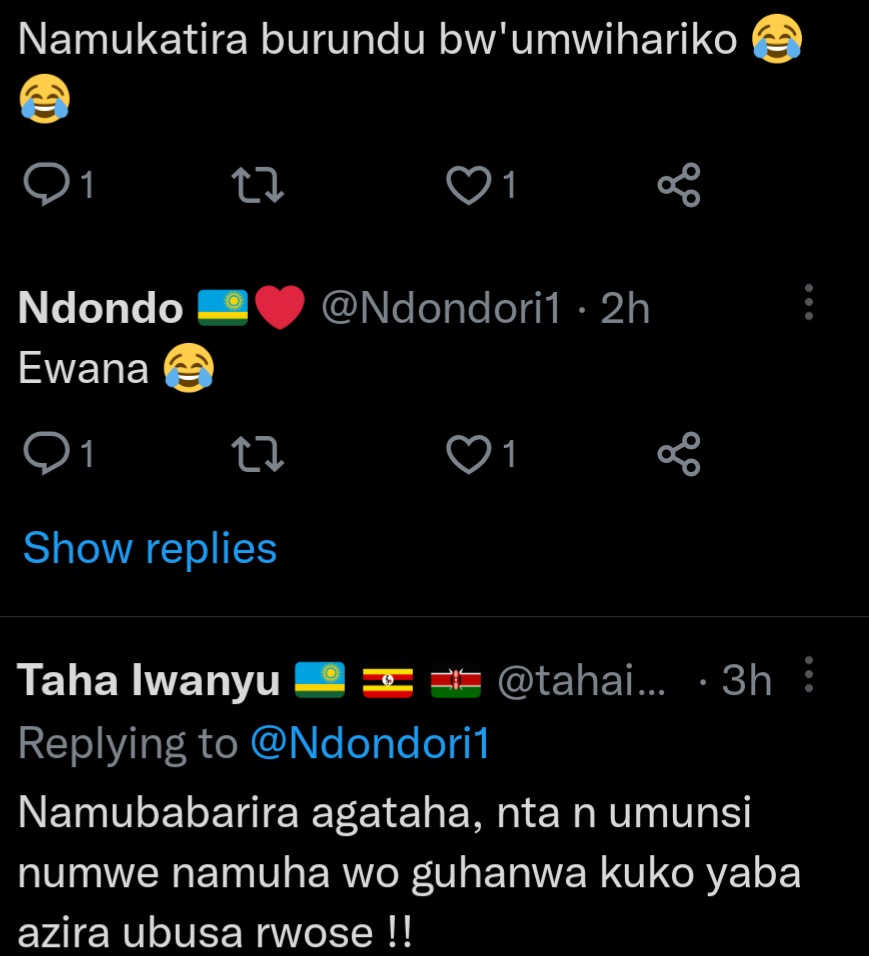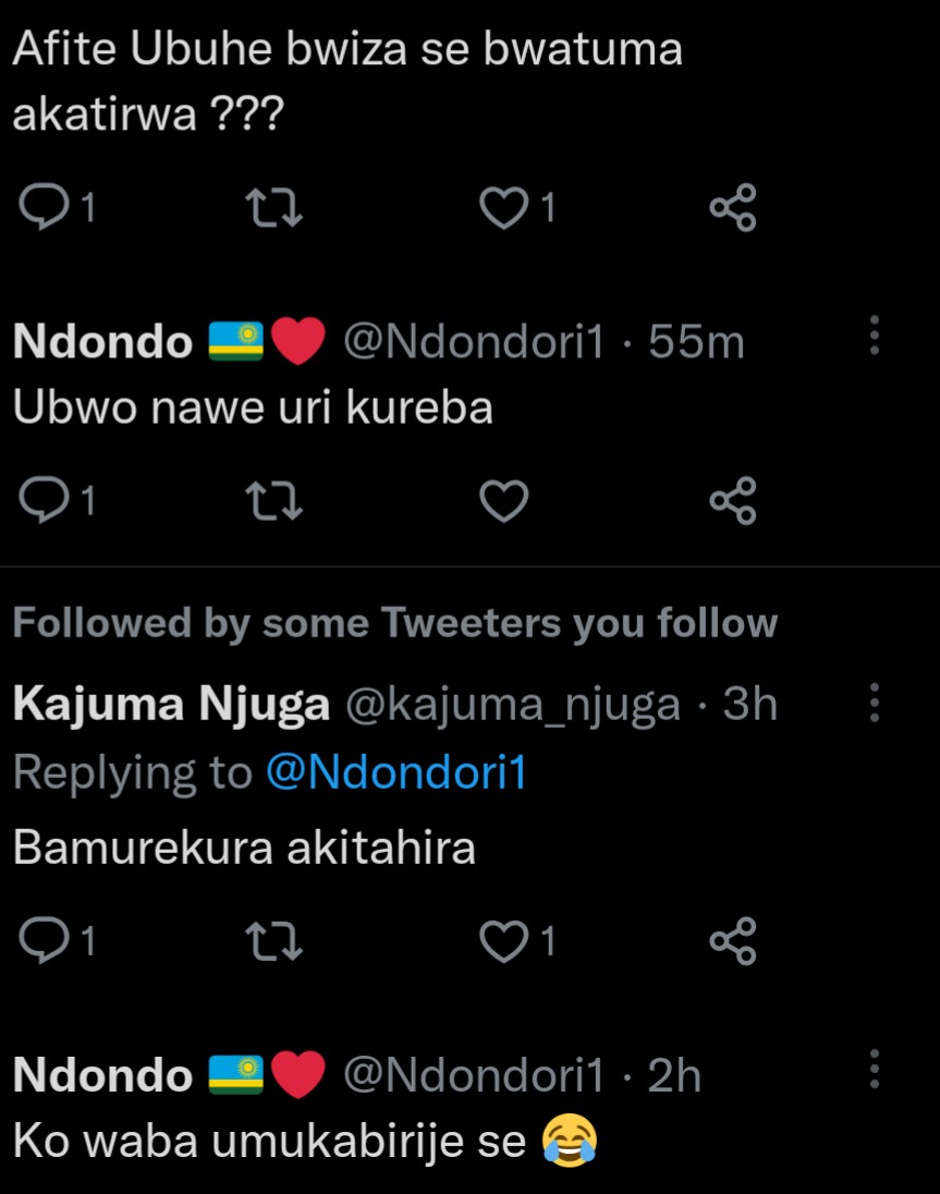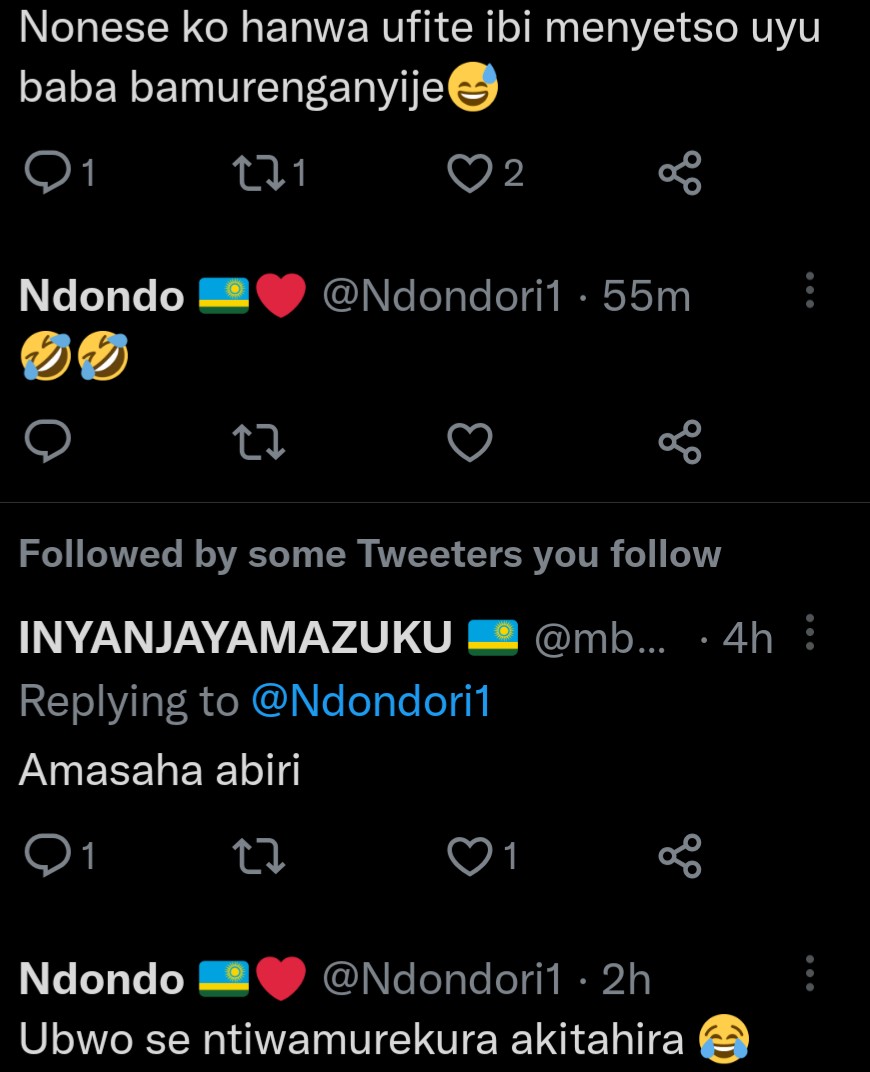 Ukoresha urukuta rwa Twitter ukoresha amazina ya Ndondo, yifashe asohora amafoto ya Mutesi Jolly ni uko maze arenzaho amagambo agira ati: “Ubwiza bubaye buhanwa n’amategeko, Jolly wamukatira imyaka ingahe?”