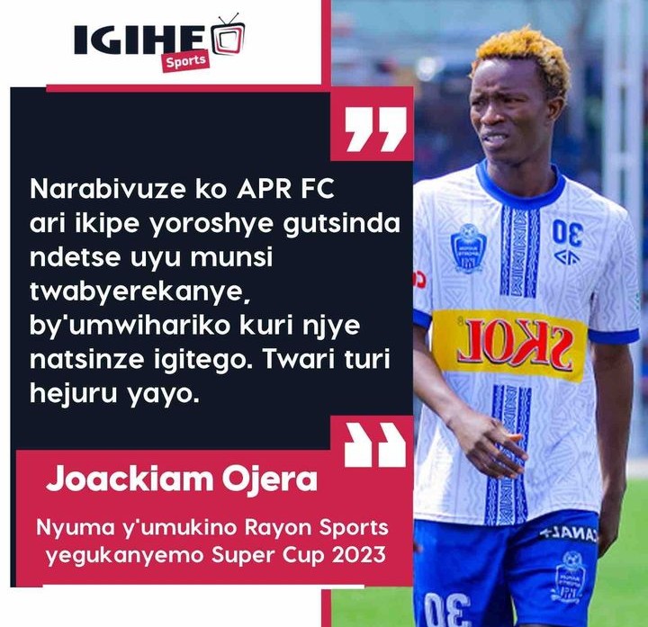 Nyuma y’umukino Rayon Sports yatsinzemo Apr Fc ibitego 3-0, Joackim Ojera wagize uruhare  rw’ubitego 2 yakoreweho  penarite, yatangaje  amagambo agaraza kwishongora  kuri. APR Fc.