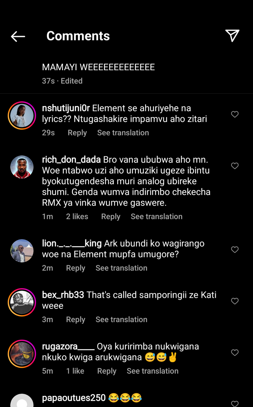 Umutunganya miziki Element ukunzwe cyane hano mu Rwanda akomeje kwibasirwa na The Cat Babalao ku rubuga rwa Instagram avuga ko uyu musore akomeje gushishura ibihangano by’abandi gusa yamaganiwe kure n’abakunzi b’uyu musore.
