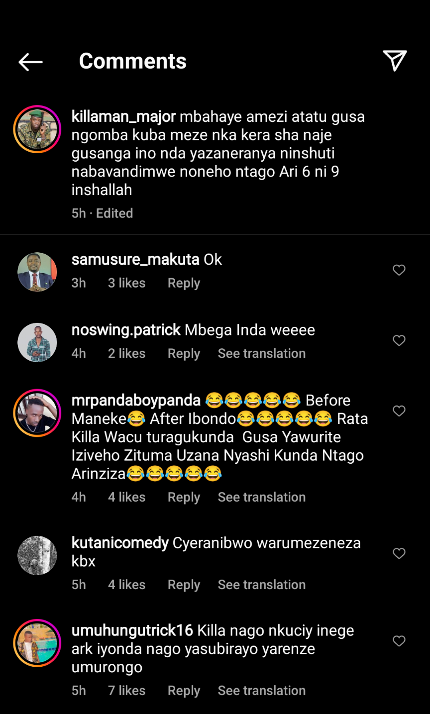 Abinyujije ku mbuga nkoranyambaga ze umunyarwenya ukunzwe cyane hano mu Rwanda Killa Man yagaragaje uburyo yari ateye mu mwaka wa 2010 maze atangaza ko agiye gukora iyo bwabaga kugira ngo yongera asubire nk’uko yahoze.