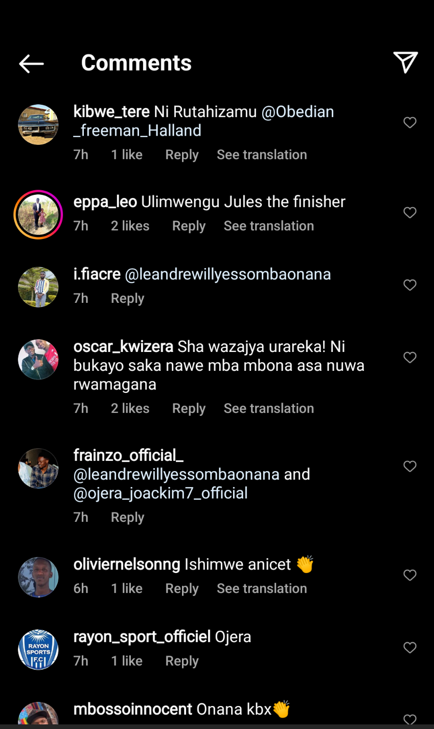 Umunyamakuru ukomeye cyane hano mu Rwanda Rugangura Axel ukorera radio y’Igihugu yifashishije imbuga nkoranyambaga ze yagize ati :”Ninde mukinnyi uheruka kuguca mu maso hano mu Rwanda wavuga ko azi umupira!” akimara kwandika aya magambo abakunzi be batangiye gutangaza abakinnyi batandukanye gusa rutahizamu Willy Essomba Onana wahoze akinira Murera yashyizwe mu majwi cyane.