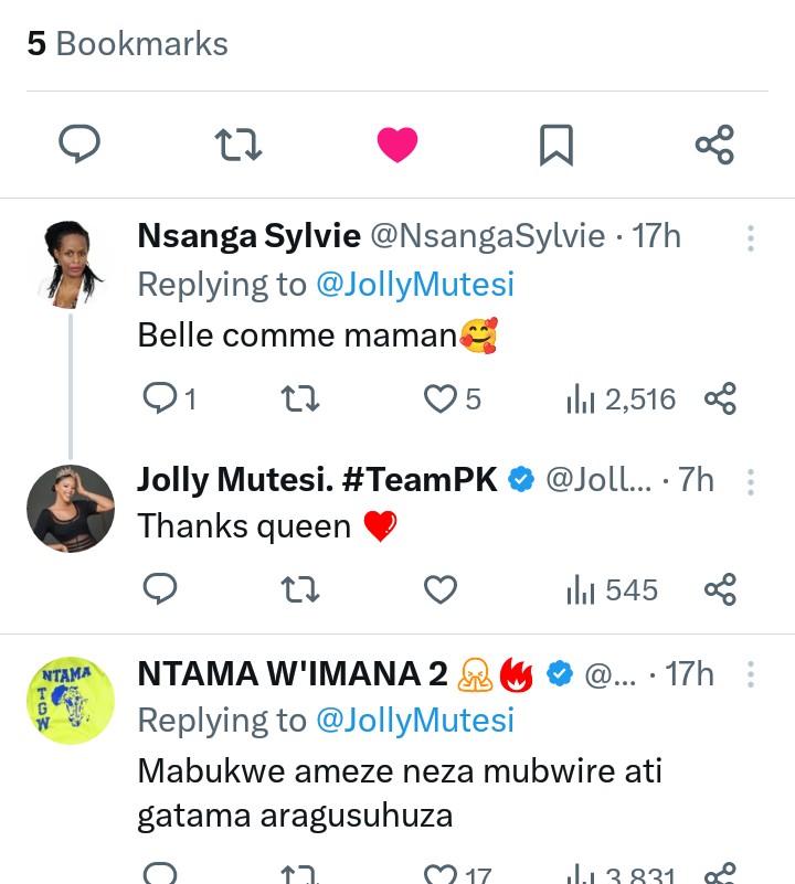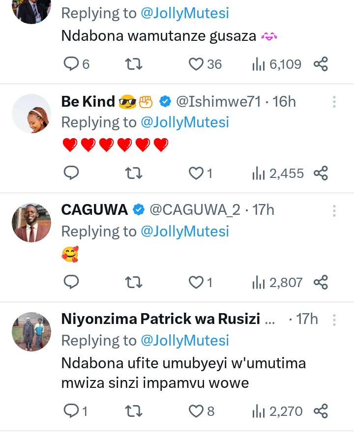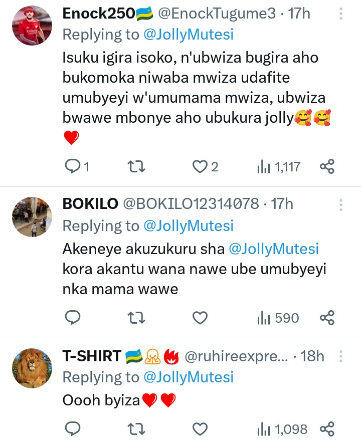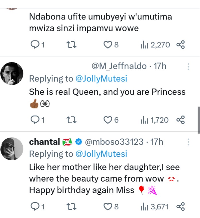 Abinyujije ku rukuta rwe rwa X, Mutesi Jolly yasangije ifoto arikumwe na Mama we umubyara. Iyi foto yafashwe ubwo bari bari mu birori by’isabukuru y’amavuko ya Jolly.