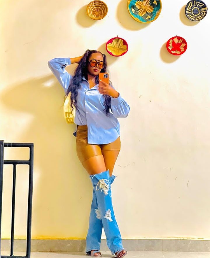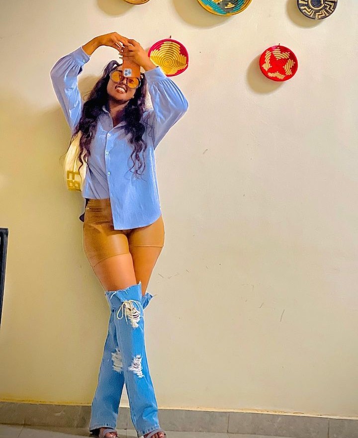 Abinyujije ku rukuta rwe rwa Instagram, Umukundwa yashyizeho amafoto yambaye ikabutura isa nk’umubiri we, ndetse n’utundi tuntu yari yambaye mu maguru dusa nk’amaguru y’ipantaro akaba aribyo byatangaje benshi.