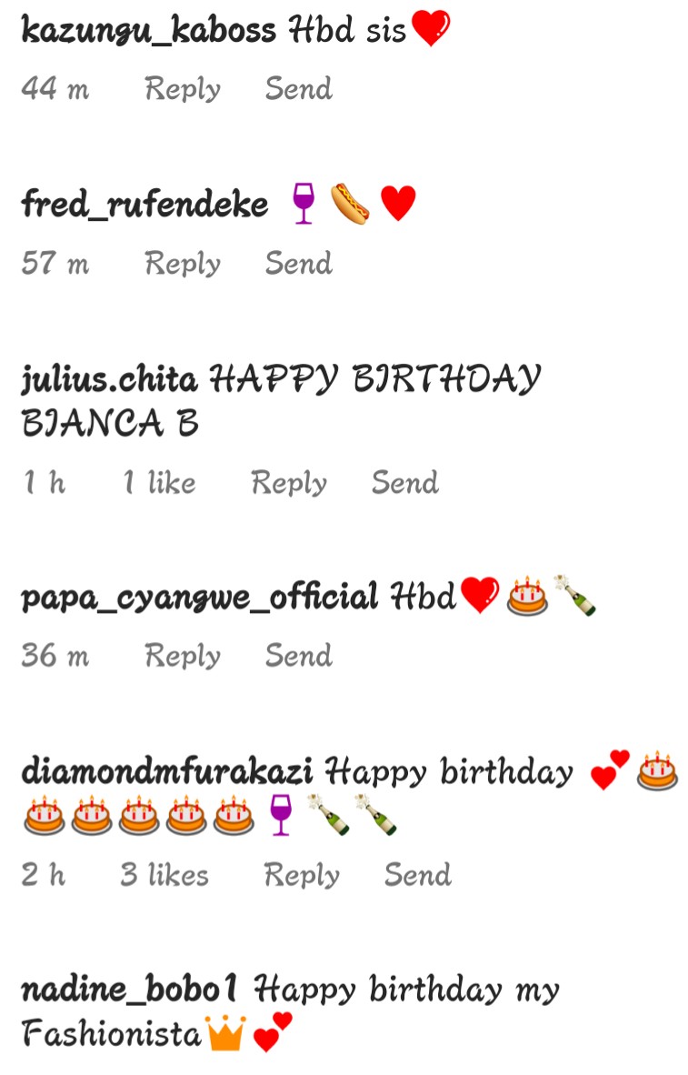 Kuri uyu munsi nibwo Bianca Baby yagize isabukuru nziza y’amavuko, aho bimwe mu byamamare byagiye bimwifuriza isabukuru nziza y’amavuko.