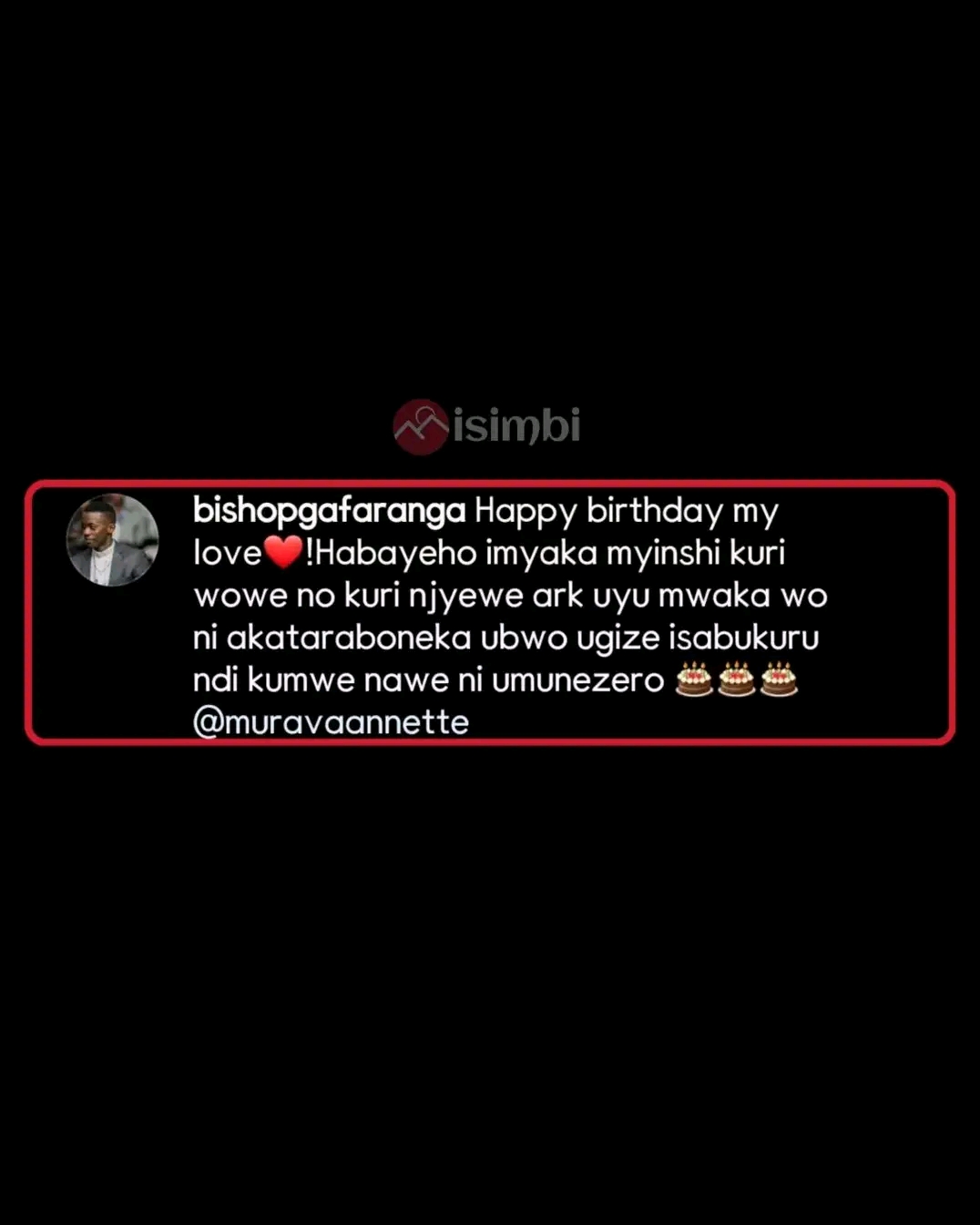 Yagize “Happy birthday my love❤️!Habayeho imyaka myinshi kuri wowe no kuri njyewe ark uyu mwaka wo ni akataraboneka ubwo ugize isabukuru ndi kumwe nawe ni umunezero 🎂🎂🎂 @muravaannette”
