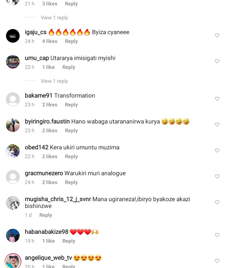 Abamusubije muri comment bagaragaje ko yahindutse cyane.Umwe yagize ati” ya nda yari irihe ndimba?” Undi ati:” wari utarabyimba”.