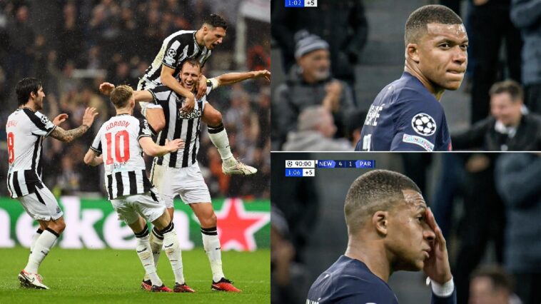 Ikipe ya Newcastle yo mu Bwongereza yabonye intsinzi yayo ya mbere muri Champions League kuva mu 2003 nyuma yo kunyagira PSG ya Kylian Mbappé ibitego 4-1.