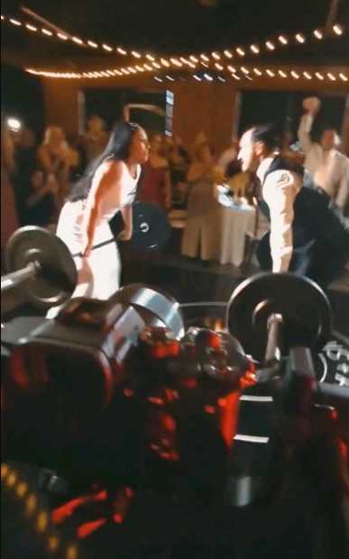 Ibyari ubukwe babigize aho baterurira ibyuma, muri Videwo yaciye igikuba reba uburyo abageni bahisemo guterura ibyuma biremereye imbere yabari bitabiriye ubukwe.
