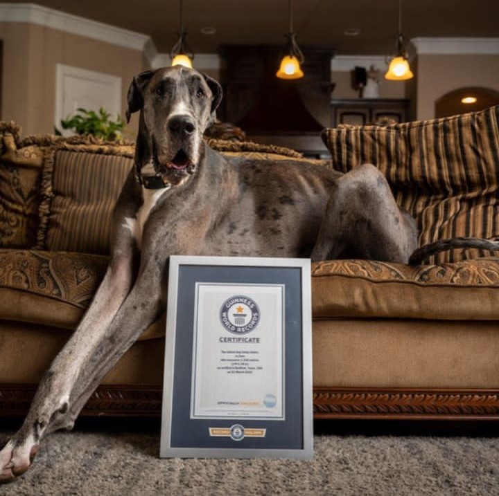 Ni ndende koko! Amafoto y’imbwa yaciye agahigo ko kuba ariyo ndende ku Isi