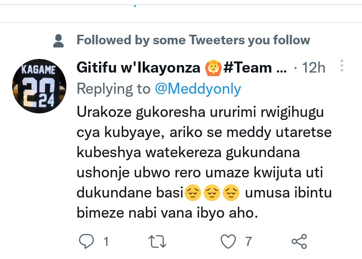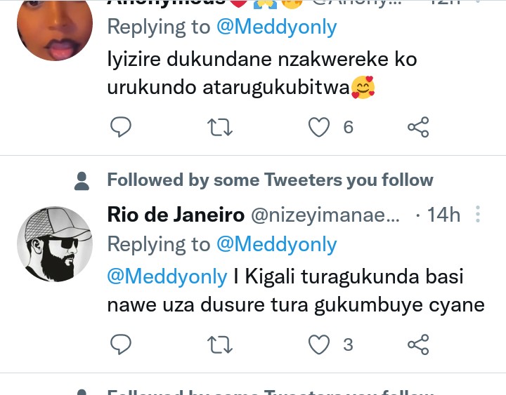Ku rukuta rwe rwa twitter, meddy yanditse mu rurimi rw’ikinyarwanda agira ati “basi dukundane” muri make yashakaga kuvuga ngo basi twiyunge.