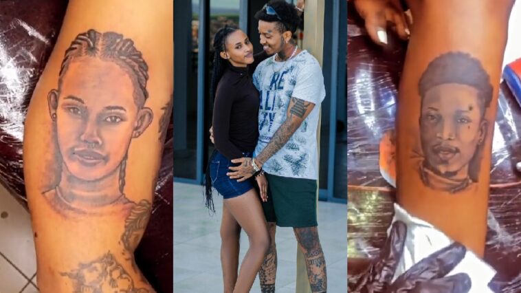 Umusore bamushyira tattoo y’isura y’umukunzi we ndetse n’umukobwa na we ni uko.