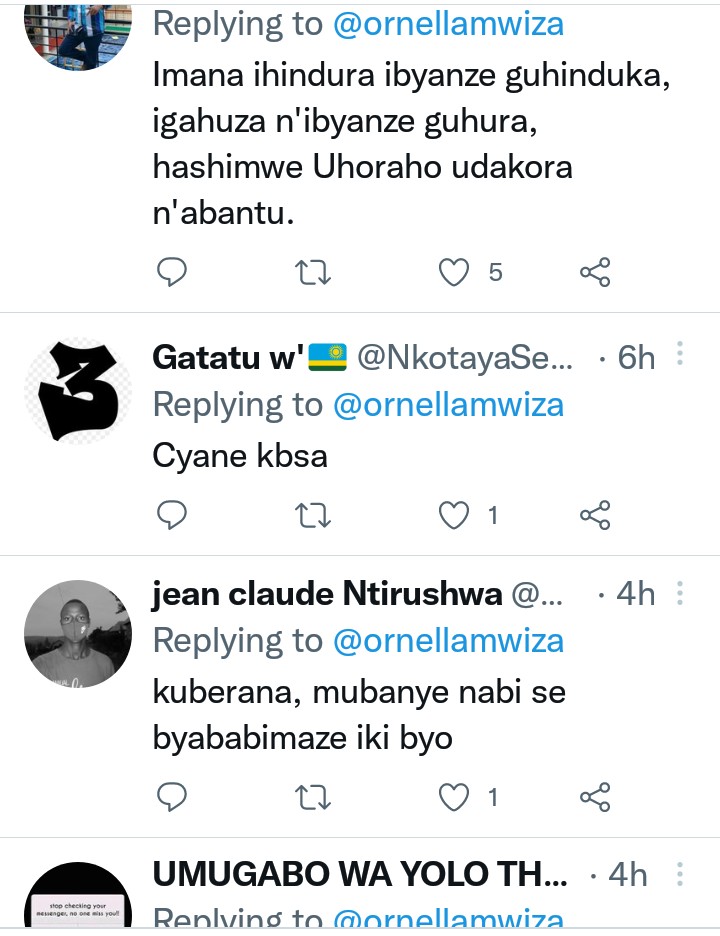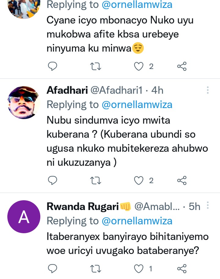 Umwe mu bakoresha Twitter witwa Ornella Mwiza yagiye kuri Konti ye yandika abaza ati”utabeshye wowe ubona iyi Couple iberanye??”.