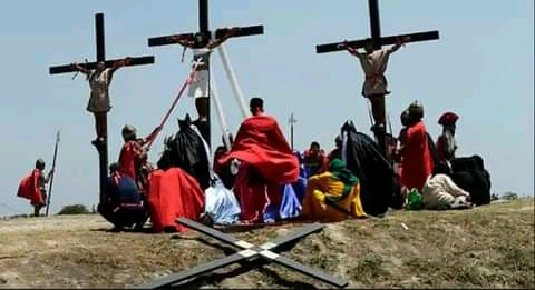 Mu Igihugu cya Nigeria umwe mu bari bari gukina umukino ugaragaza uburyo Yesu yabambwemo yitabye Imana.