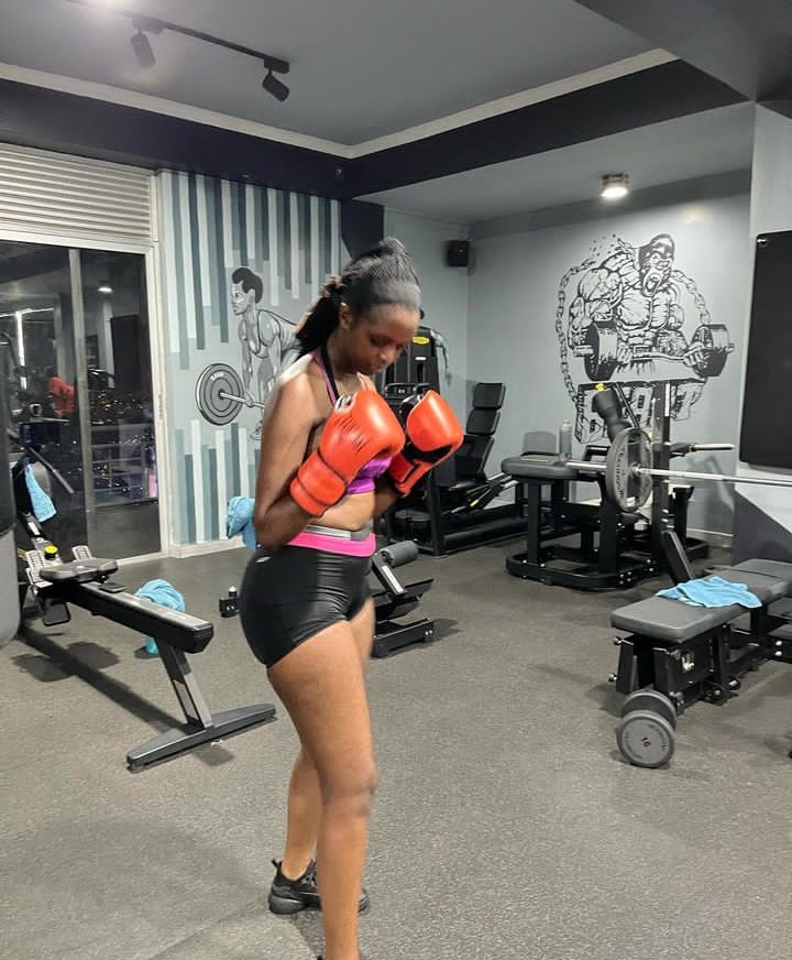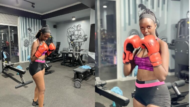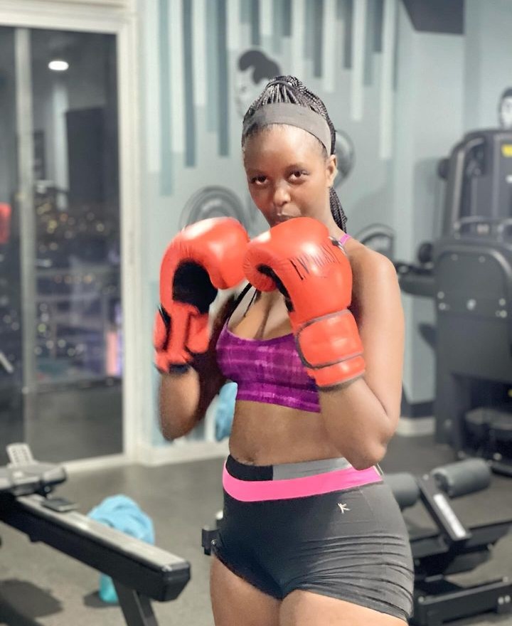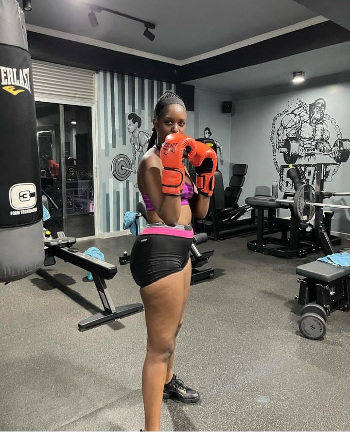 Ni amafoto yasangije abamukurikira ku mbuga nkoranyambaga ze, aho yagaragaye ari kwitoza gutera ingumi.