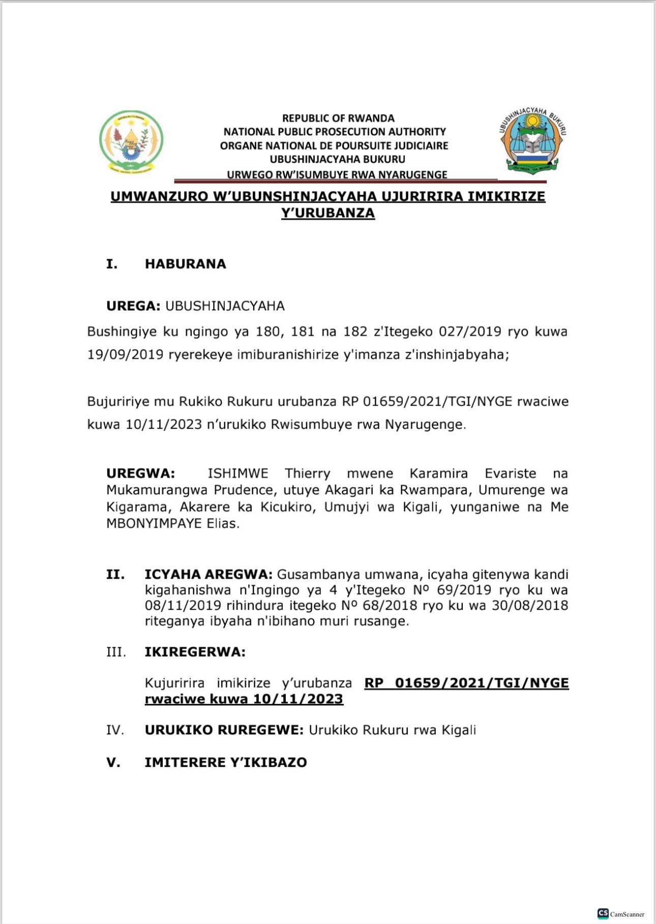 Gusa urukiko rwari rwatanze iminsi 30 yo kujurira  ku bushinjacyaha, mbere y’uko iyo minsi irangira, Ubushinjacyaha bwatanze ubujurire mu rukiko. Soma inyandiko y’Umushinjacyaha.