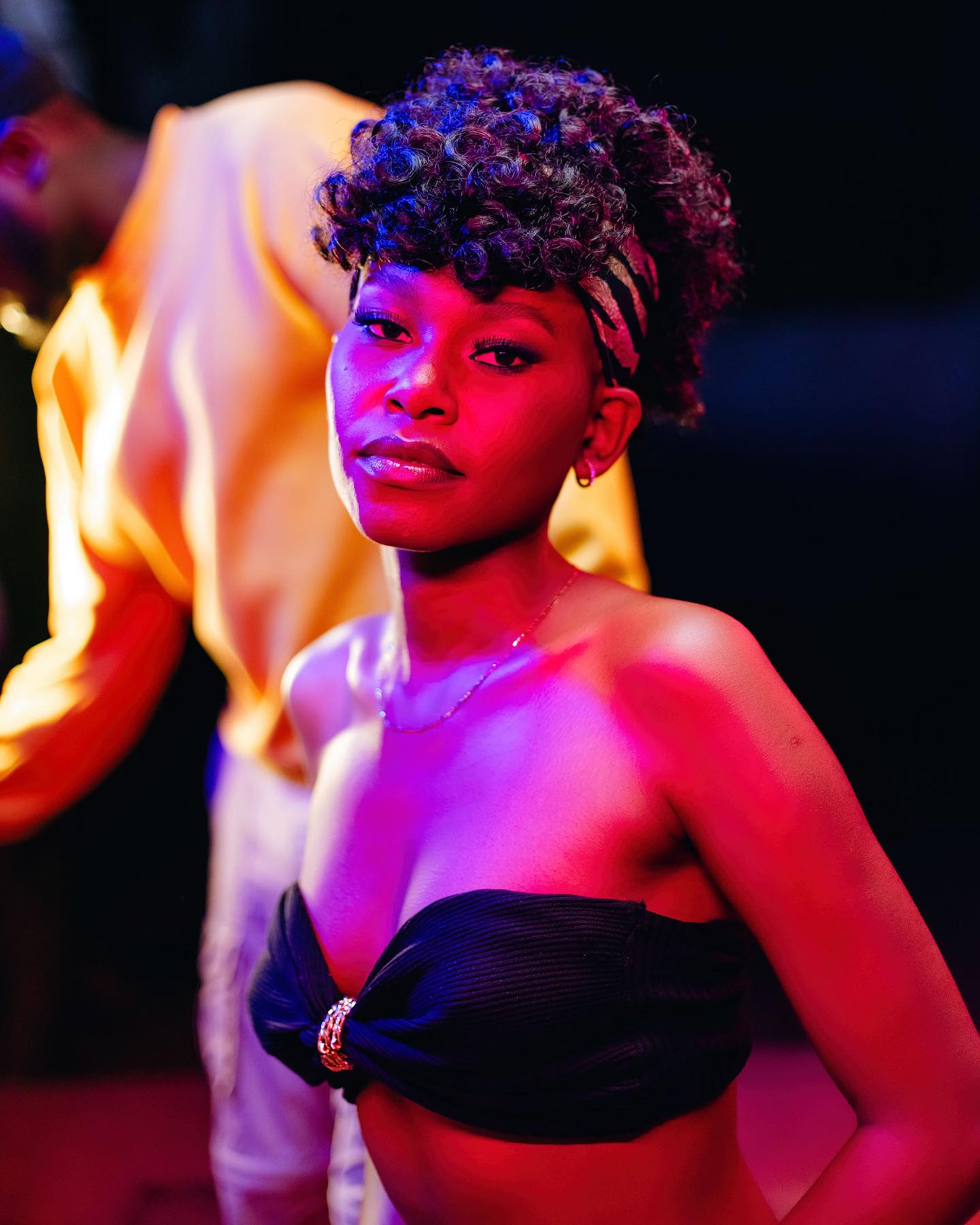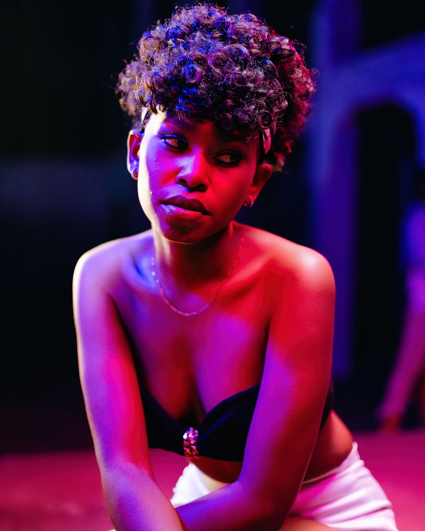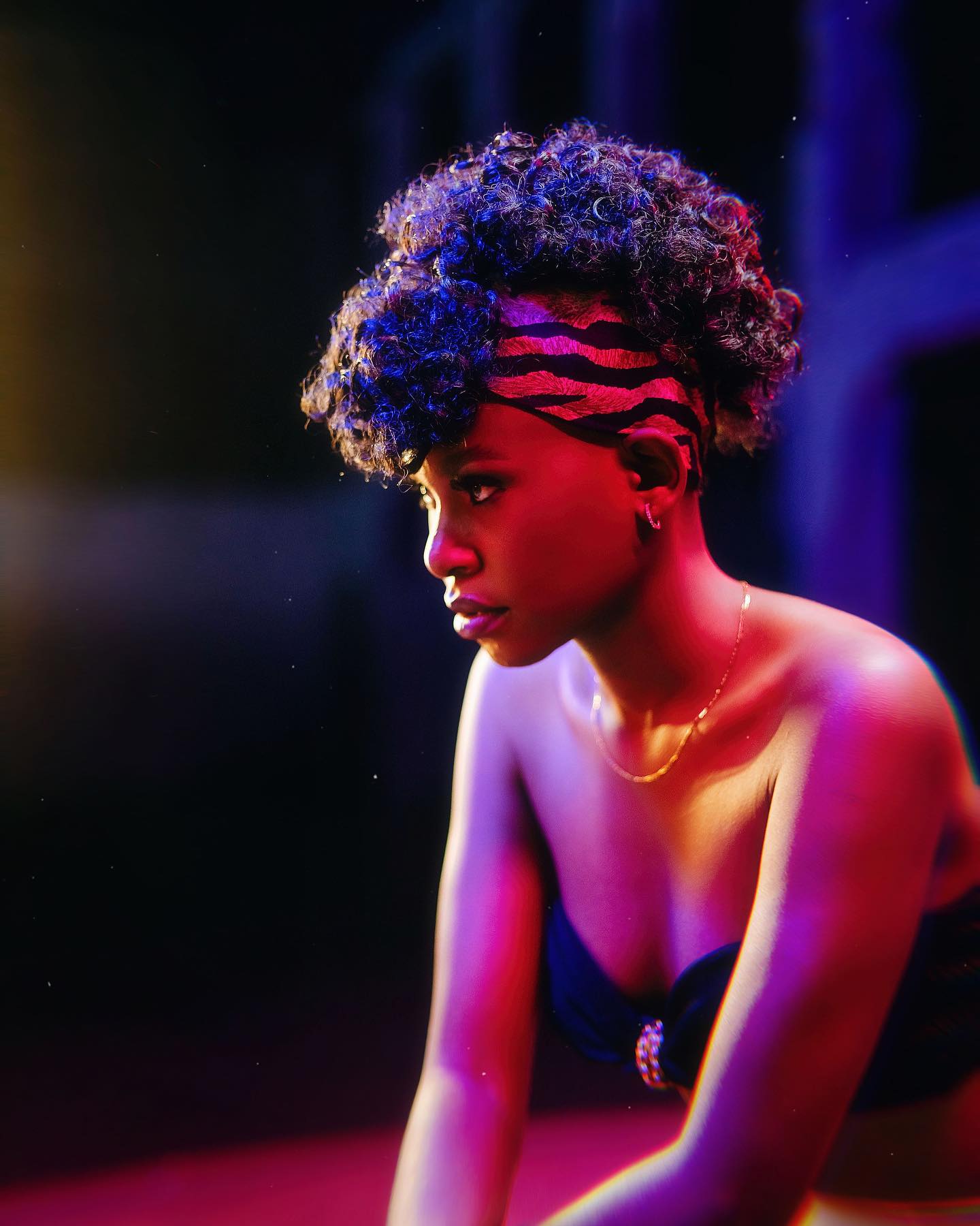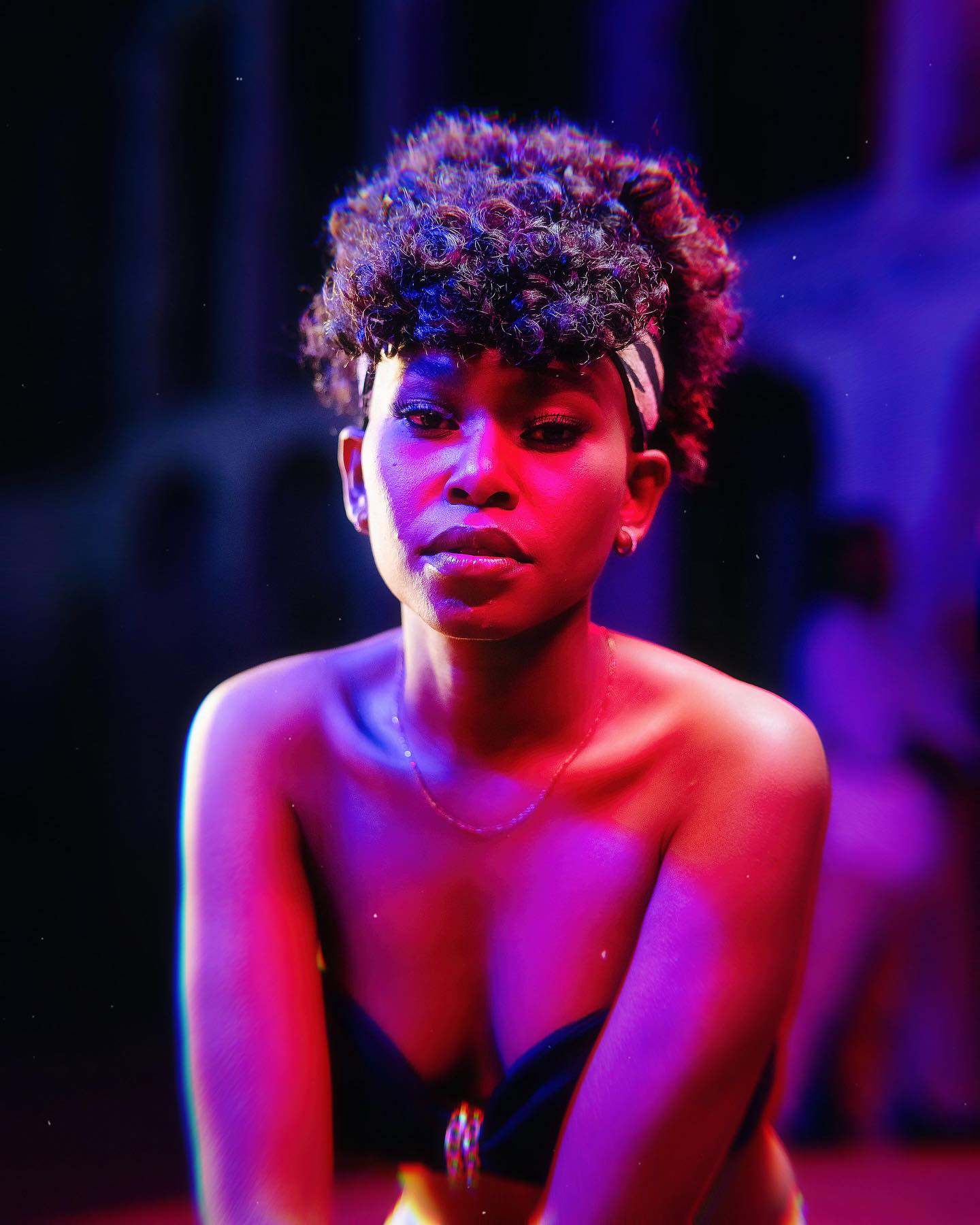 Mu mafoto mashya yashyize hanze aba agaragara igice ndetse aba yambaye n’akenda gapfutse amabere gusa.