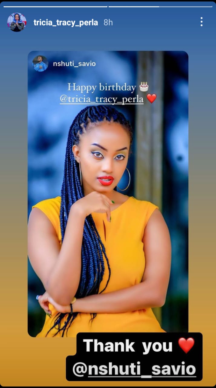 Nyuma yuko Nshuti Savio yifurije Tracy isabukuru nziza, Tracy nawe yahise amusubiza mu magambo agira ati « Thank you❤️ @nshuti_savio ».