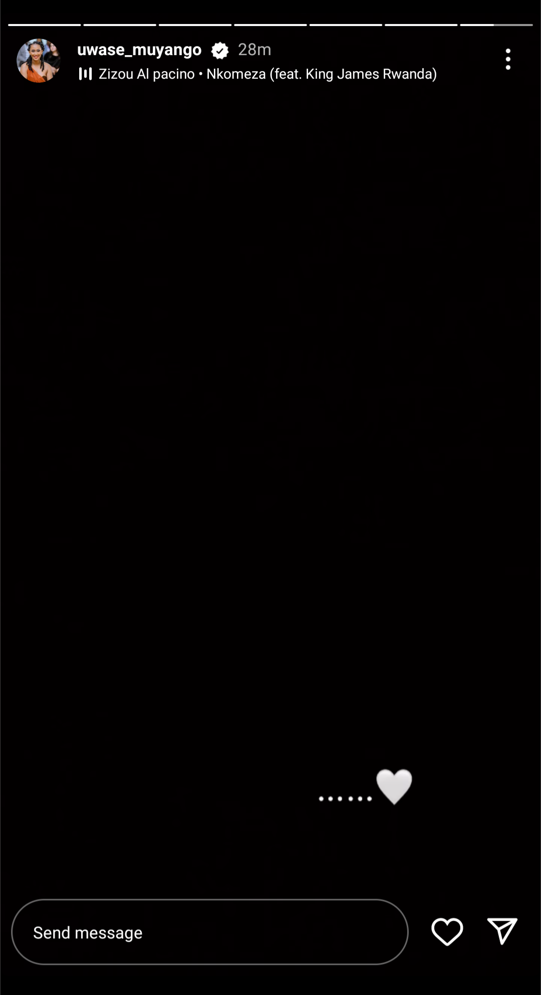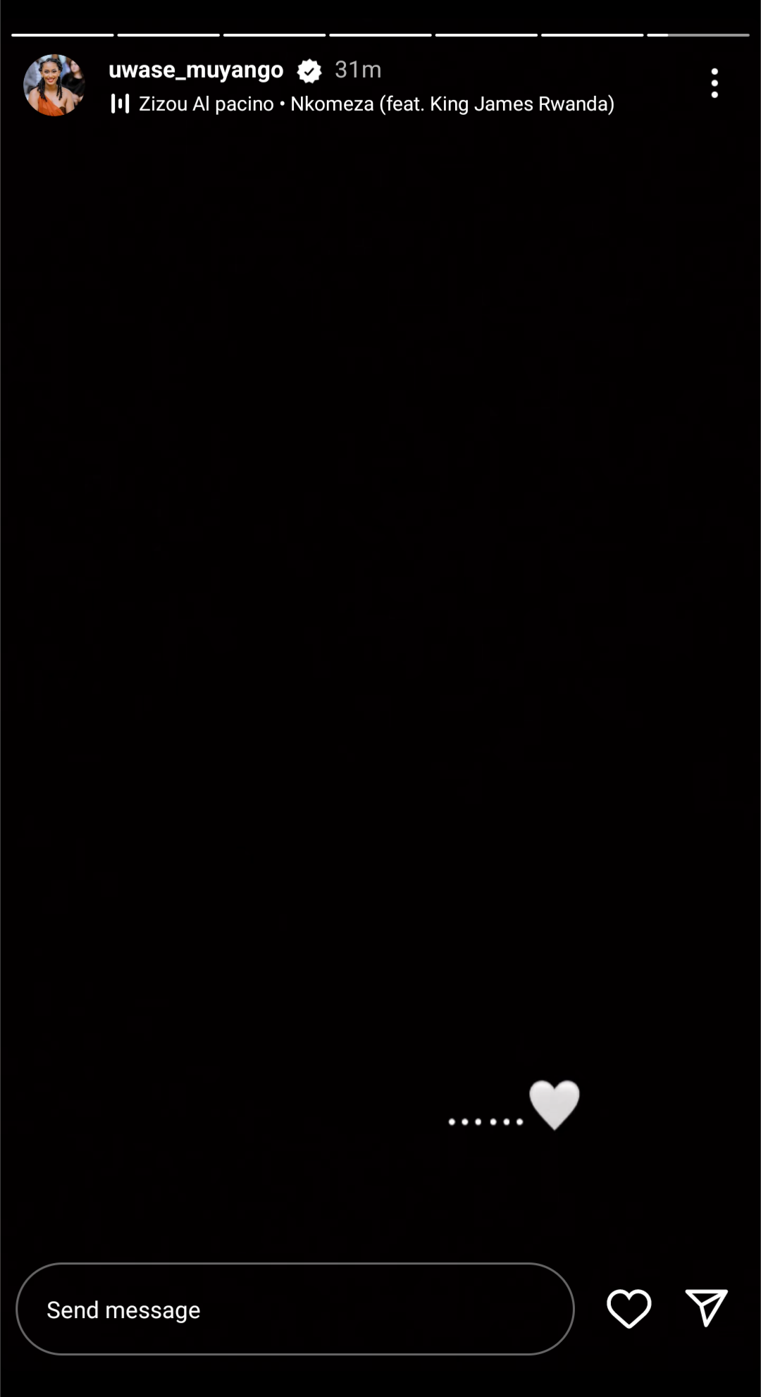 Madamu wa Kimenyi Yves uzwi nka Miss Muyango abinyujije kurukuta rwe rwa Instagram ahashirwa ubutumwa bumara amasaha 24 yashyizeho akamenyetso ku mutima maze arenzaho indirimbo imuhumuriza mugahita afite ku mugabo we.