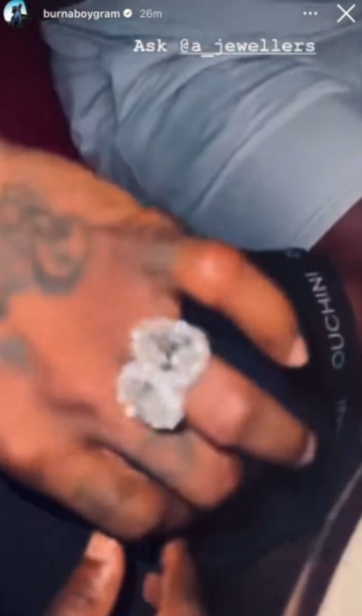 Burna Boy yifashishije imbuga nkoranyambaga ze yongeye gutungura abakunzi be ubwo yaberekaga impeta yaguze ihagaze miliyoni ebyiri z’amadorali akaba ari amafaranga arenga miliyari ebyiri z’amafaranga y’u Rwanda.
