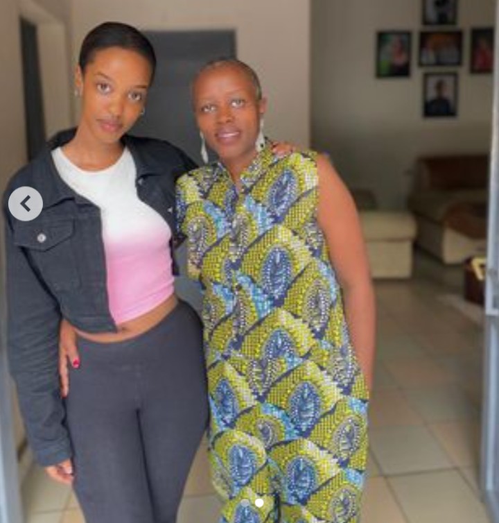 Yasangije amafoto arikumwe n’umudamu ubona ko akuze ariko adakuze cyane ubundi agira ati ” Uyu ni mama wange”. Benshi batangajwe n’ubwiza by’uyu mubyeyi wabyaye aba miss.