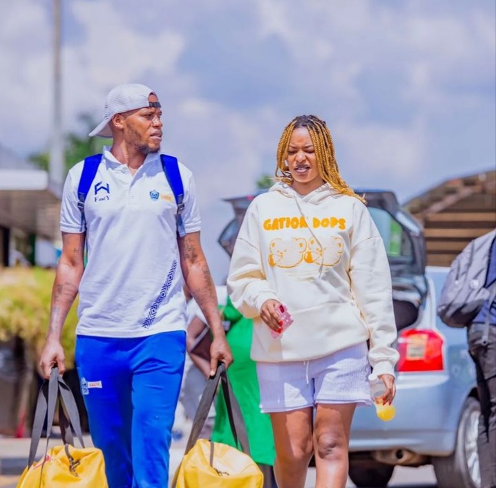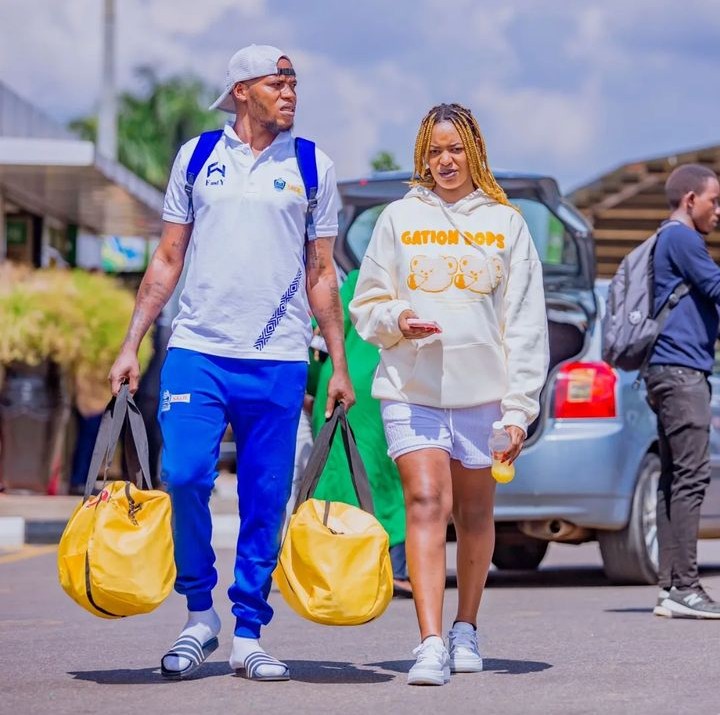 Umunyezamu, Hategekimana Bonheur wa Rayon Sports yageze ku kibuga cy’Indege cya Kigali i Kanombe aherekejwe n’umukunzi we w’ikizungerezi.