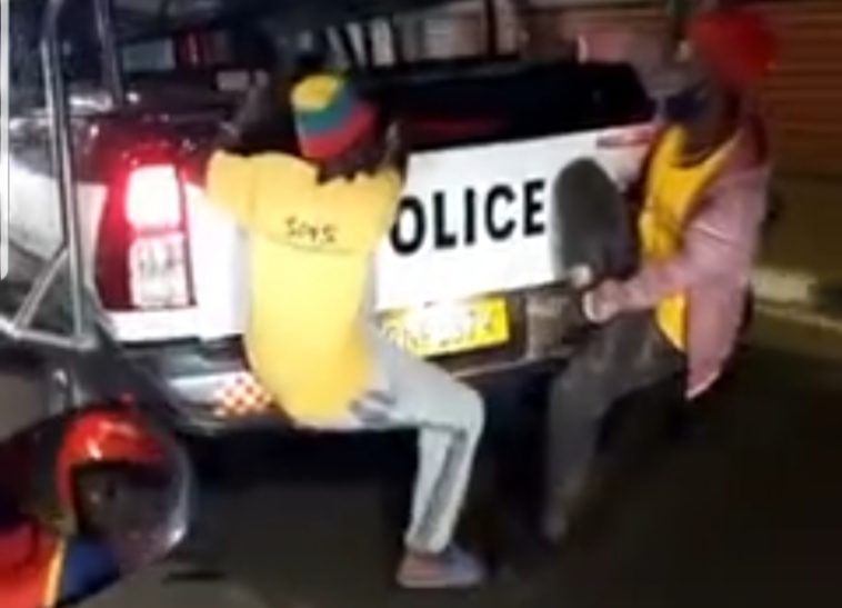 Ntabwoba bagira! Abasore bagaragaye bitendetse ku modoka ya Polisi y’u Rwanda