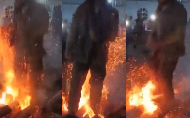 Ntago wapfa kubyizera kereka ubibonye! Umugabo yahagaze mu kibatsi cy’umuriro abyinamo arenzaho anaryamamo ntiyagira icyo aba (Reba amashusho)