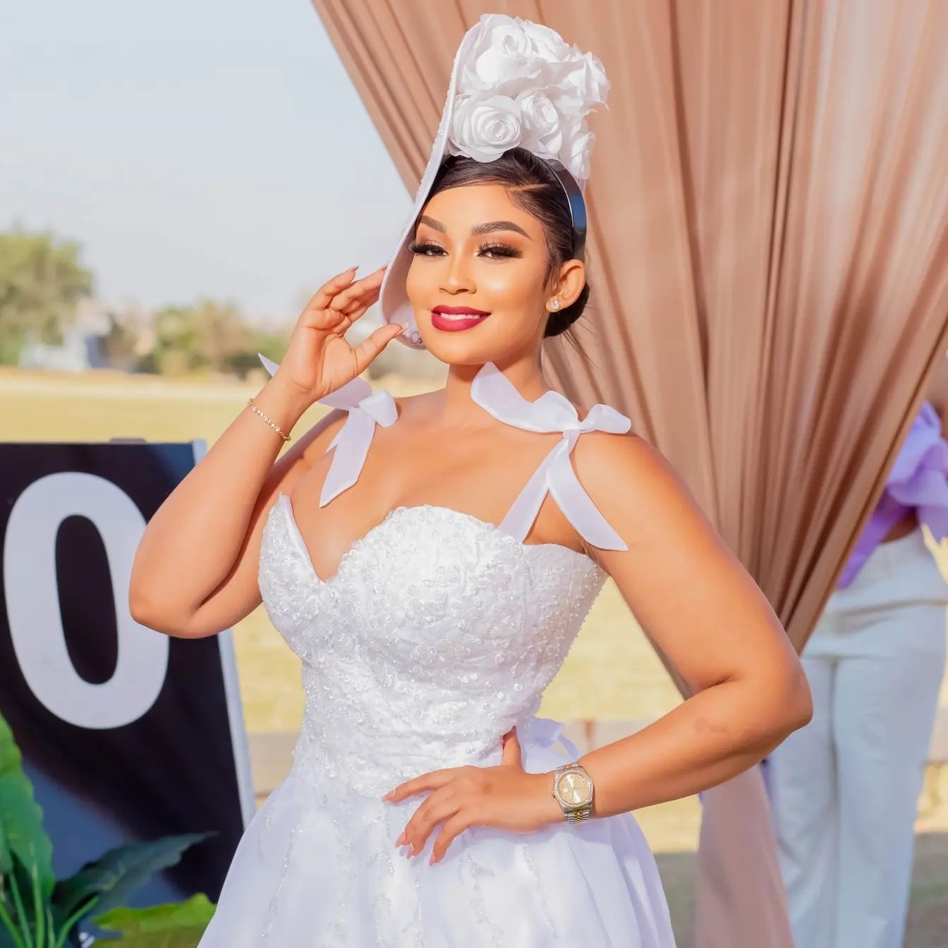 Ntajya asaza: Umuherwekazi Zari mu myambaro y’ubukwe imyaka ye nk’iyikiyoni yahise ihananuka