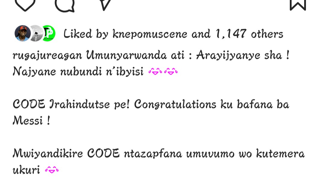Abinyujije ku rukuta rwe rwa Instagram, Reagan Rugaju yagize ati: “Umunyarwanda ati ‘arayijyanye sha! Ni ajyane n’ ubundi ni iby’isi’ code irahindutse pe! Congratulations ku bafana ba Messi! Munyandikire code ntazapfana kutemera.”