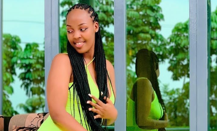 Ni ifoto igaragaza uyu mukobwa wamamaye mu mashusho y’indirimbo ‘Umunamba’ ya Mico The Best akaba n’umunyamakuru kuri Flash Tv ari naho yakoze ikiganiro yambaye akenda bakinze amabere gusa(isutiye).