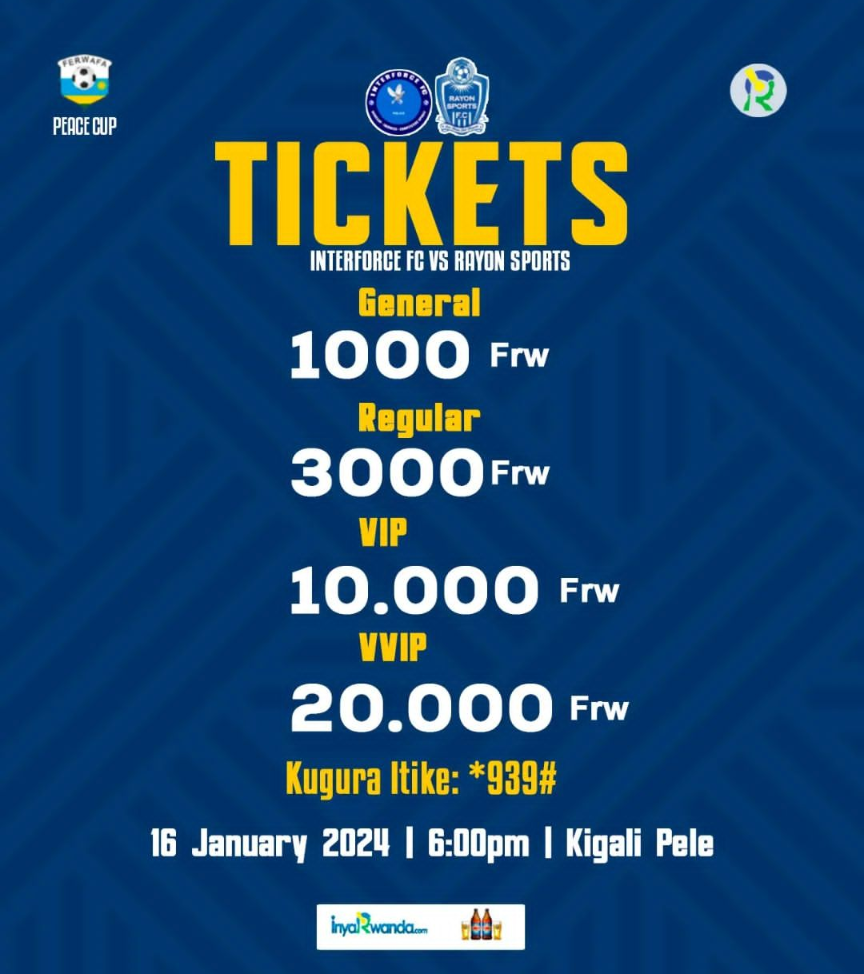 Uyu munsi tariki 16 Mutarama 2024 nibwo ikipe ya Interforce FC irakira Rayon Sports mu mukino wa 1/8 w’igikombe cy’Amahoro urabera kuri Kigali Pele Stadium aho umuntu ufite inote y’igihumbi ashobora kureba uyu mukino akaba ari bintu bidakunze kubaho igihe Rayon Sports yakinnye gusa n’ibiciro byashyizweho n’ikipe ya Interforce FC kubera ko ariyo yakiriye umukino.