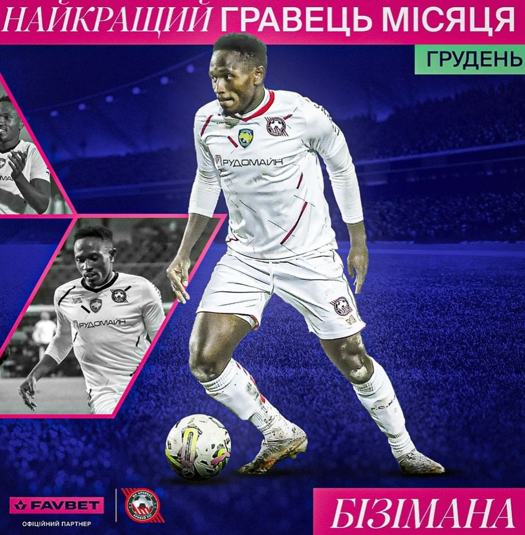 Amafoto ya Bizimana Djihad wabaye umukinnyi w’ukwezi kwa 12 mu ikipe ye ya Kryvbas FC ikina mu cyiciro cya mbere muri Ukraine: