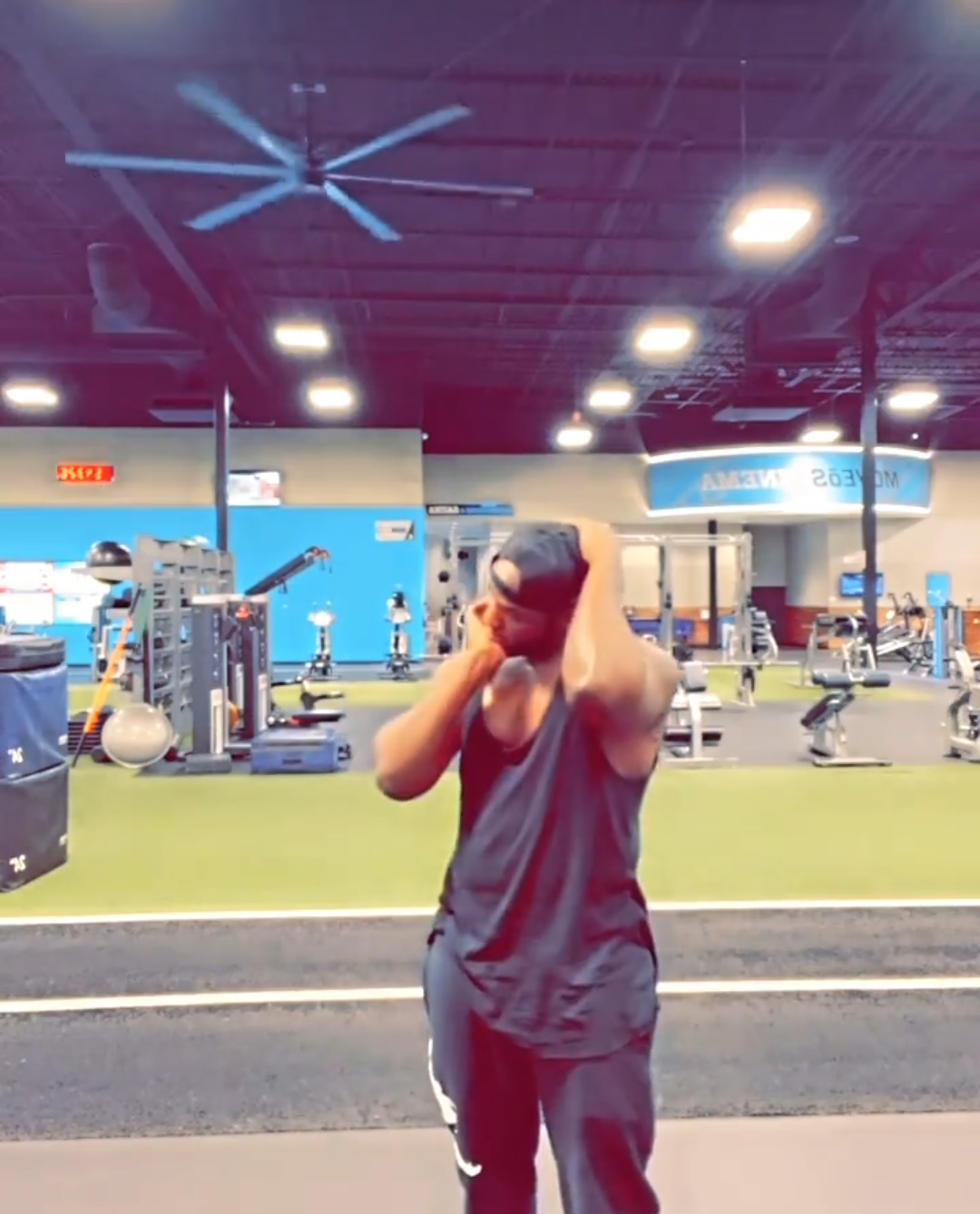 Abinyujije kurukuta rwe rwa Instagram yashyizeho amashusho ari mucyumba bakoreramo imyitozo maze atangira kwerekana ubusore n’ubukaka bisigaye bimuranga.
