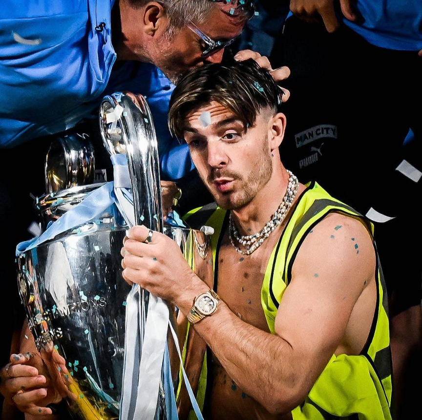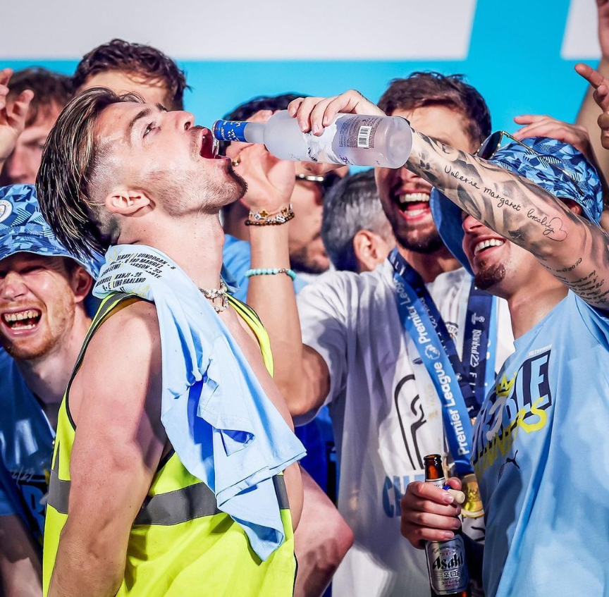 Jack Grealish nyuma y’uko ikipe ya Manchester City yegukanye igikombe cya Uaefa Champions League ku nshuro yayo ya mbere mu mateka abakinnyi bayo bishimiye iki gikombe mu buryo budasanzwe abanywa agatama baragasoma mbese buri wese afata icyo abashije gusa uyu musore we yaragasomye ku rwego rwo hejuru.